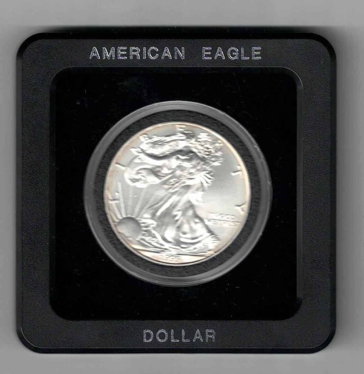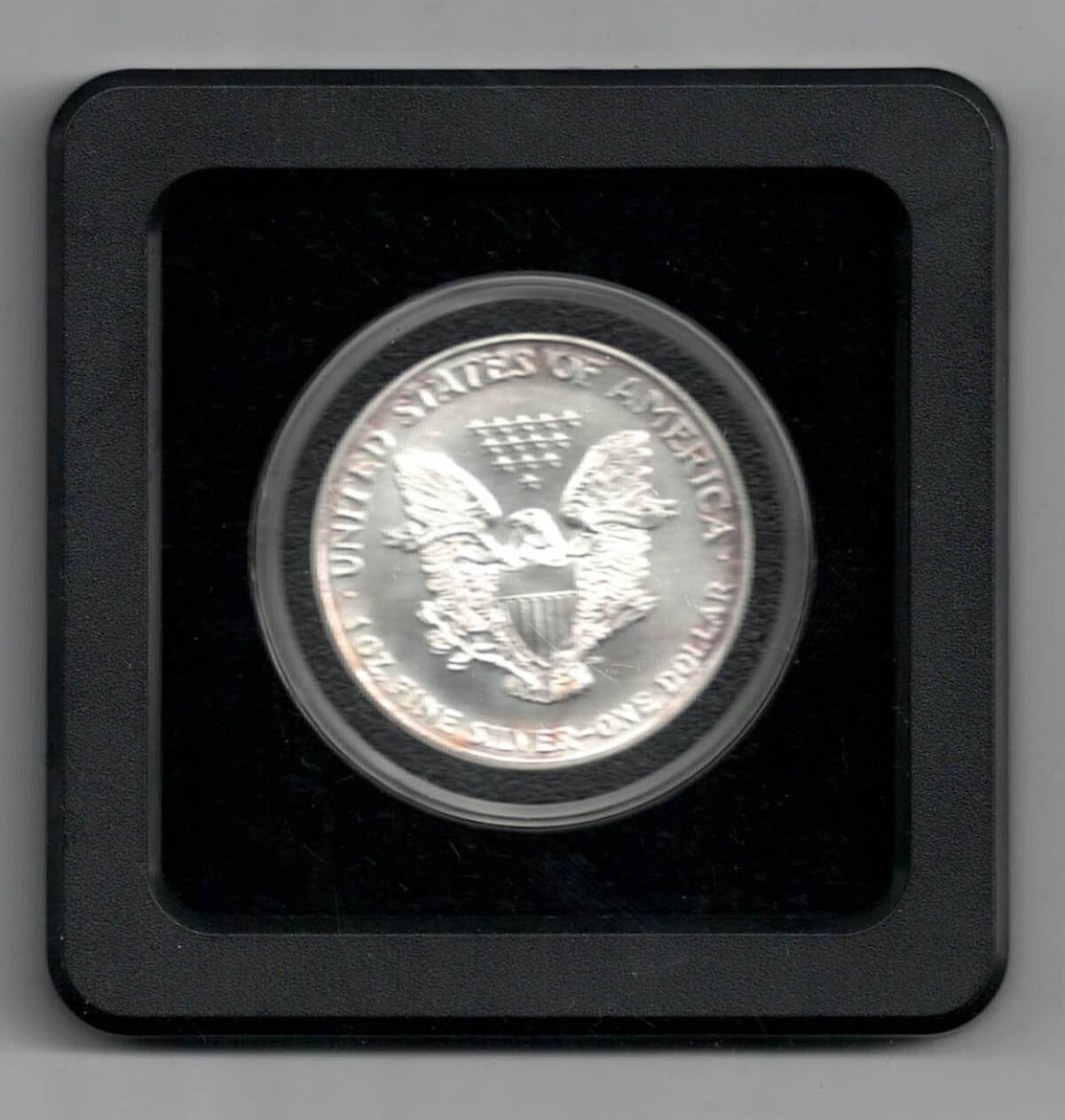 1999 Silver USA One Ounce Eagle Coin In Display Case In Near Mint Condition.