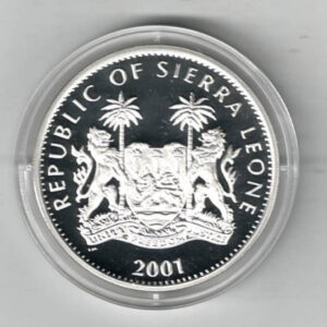 The obverse features the coat of arms of Sierra Leone. The reverse features a colourised African female and male lion.