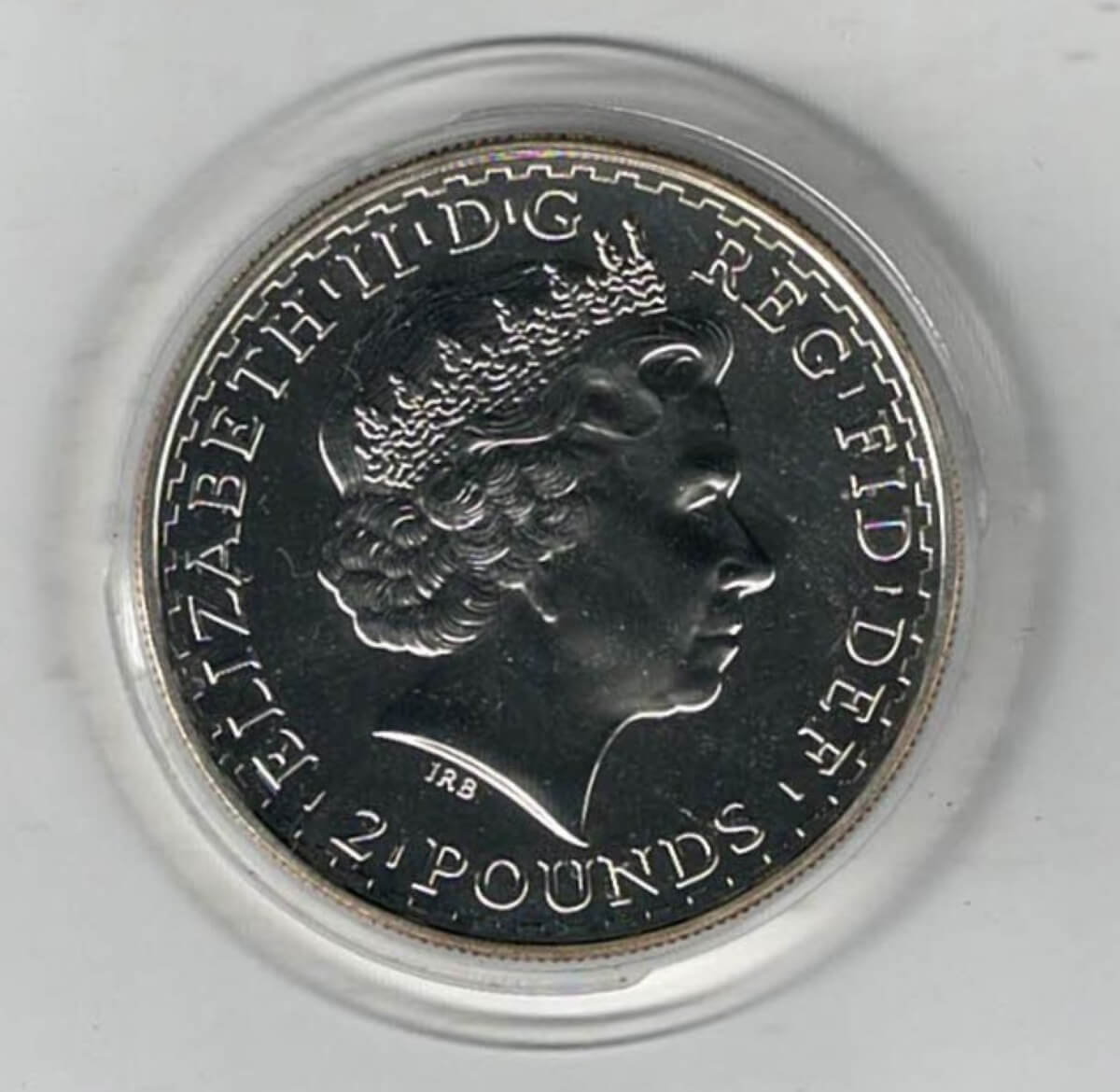 2001 One Ounce Silver Britannia £2 coin in Near Mint Condition.