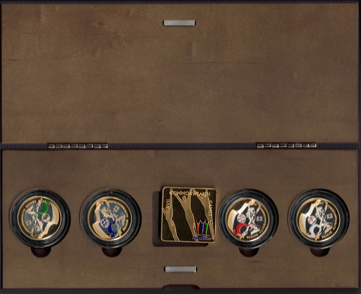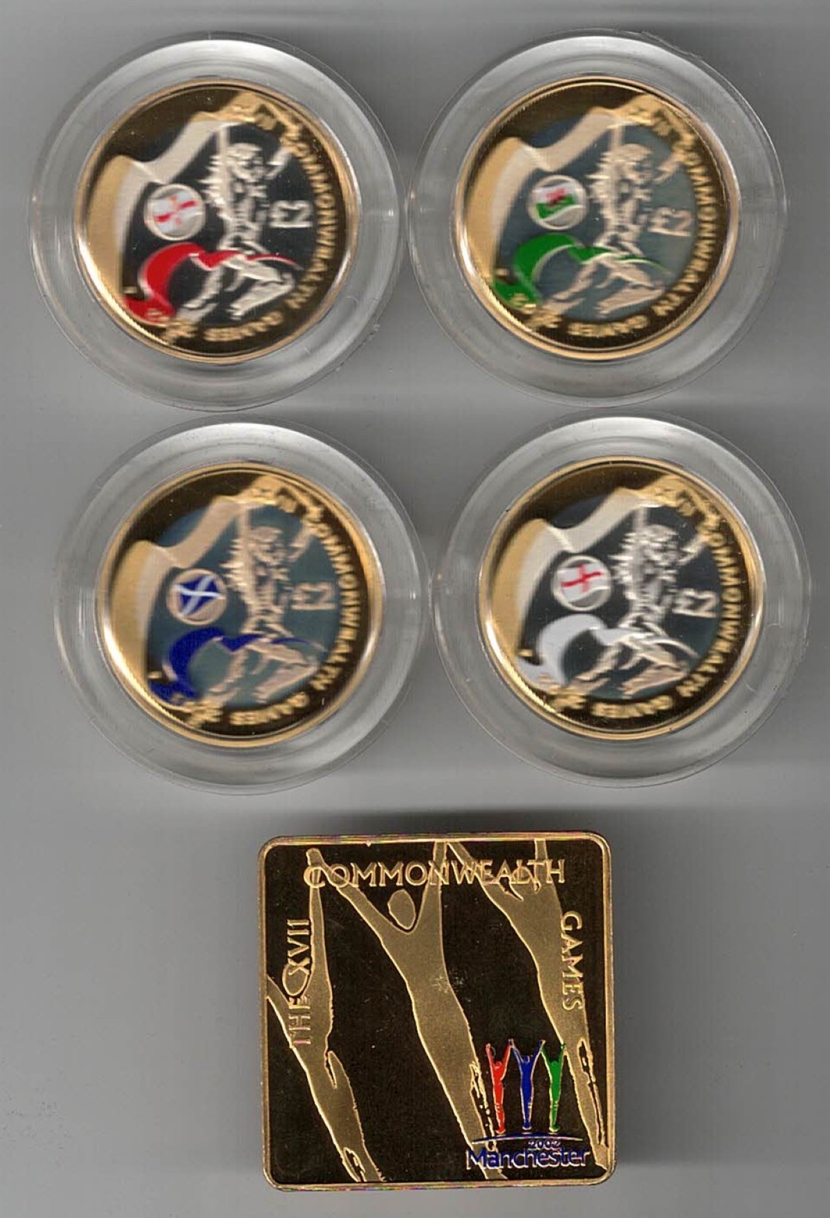 2002 Royal Mint Commonwealth Games Two Pounds, Piedfort, Silver Proof, Four Coin Colourised Set In Near Mint Condition.