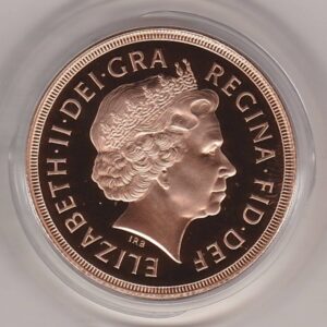 The Gold Double Sovereign Coin was struck in 22 carat and weighs approx. 15.976 grams. The equivalent 0.47 ounces of fine Gold.