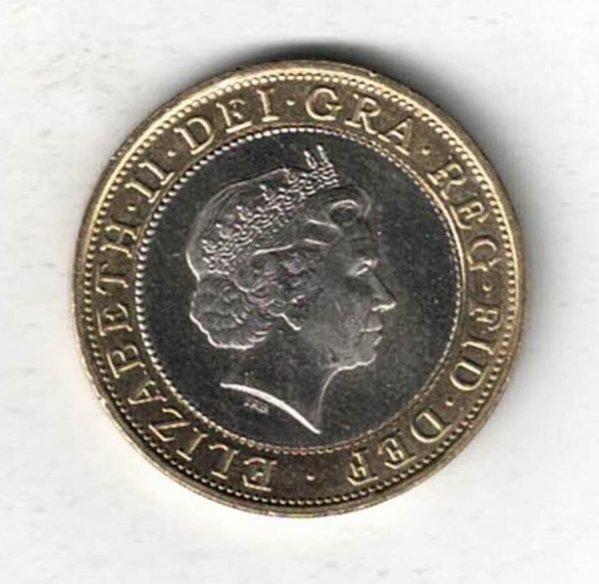 This coin was struck with a bimetallic Copper-Nickel centre in nickel brass.