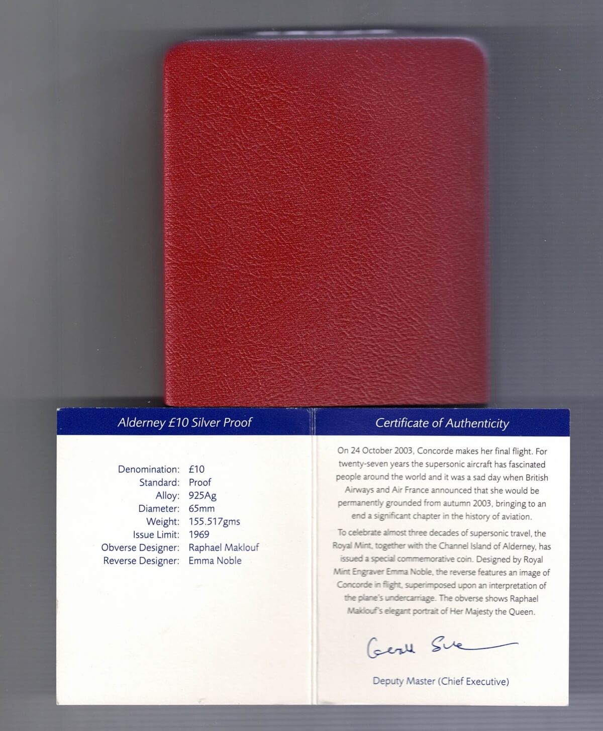 2003 Alderney Silver Five Ounce Concorde Proof Coin In Near Mint Condition.