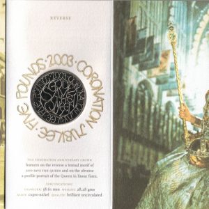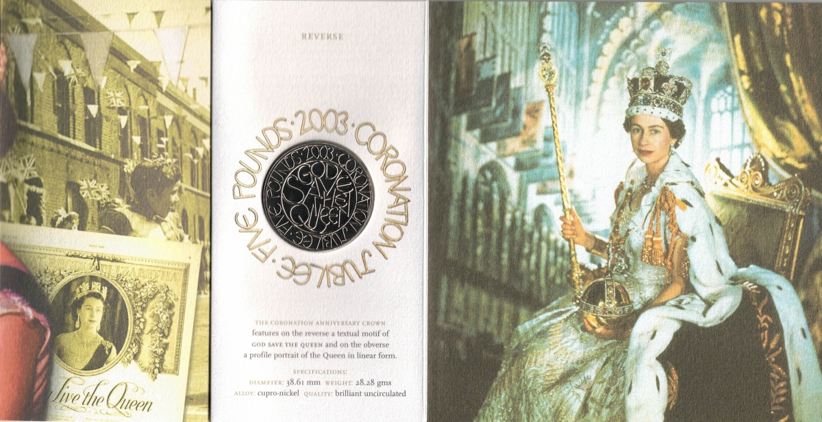 2003 Five Pound Coronation Anniversary Coin, Celebrating the 50th anniversary of coronation of Queen Elizabeth II.