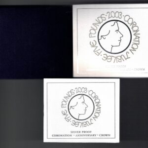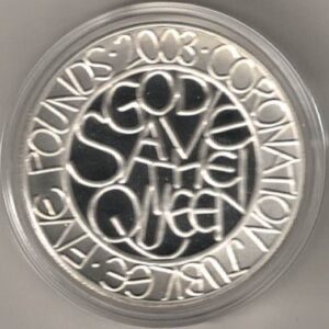2003 Five Pounds Standard Silver Proof Coronation Anniversary Coin In Mint Condition.