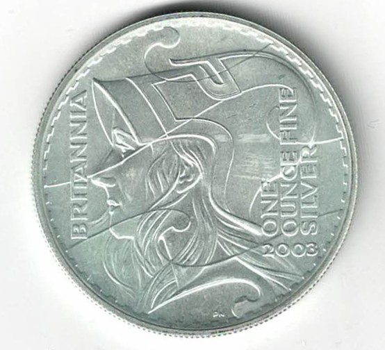 2003 One Ounce Silver Britannia £2 coin in Near Mint Condition.