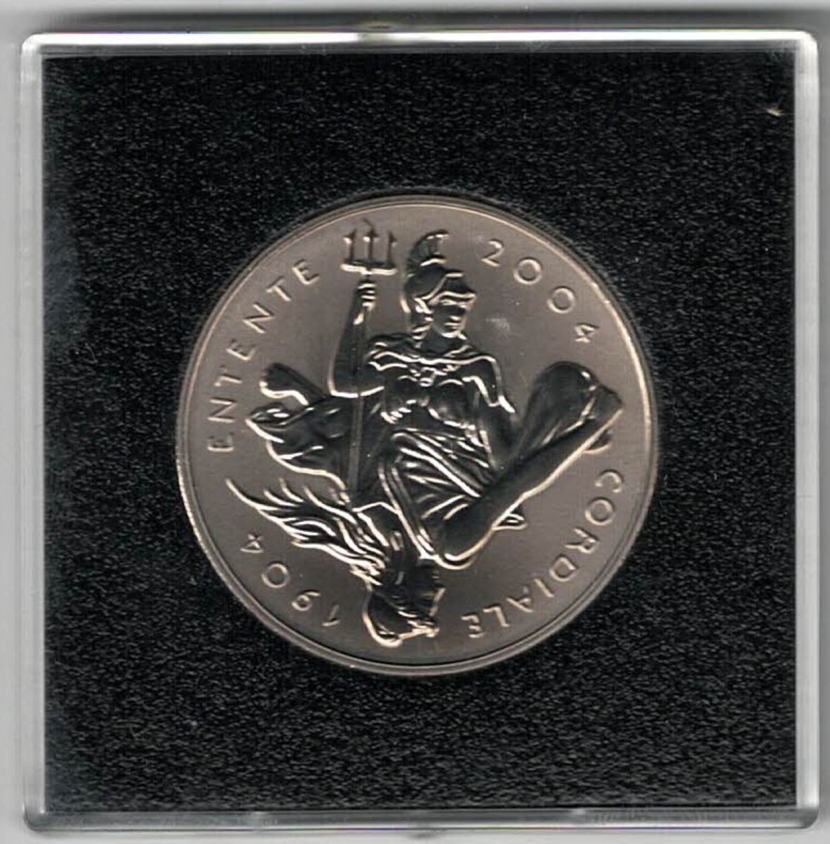 This is a commemorative coin marking the 100th anniversary of the Entente Cordiale.