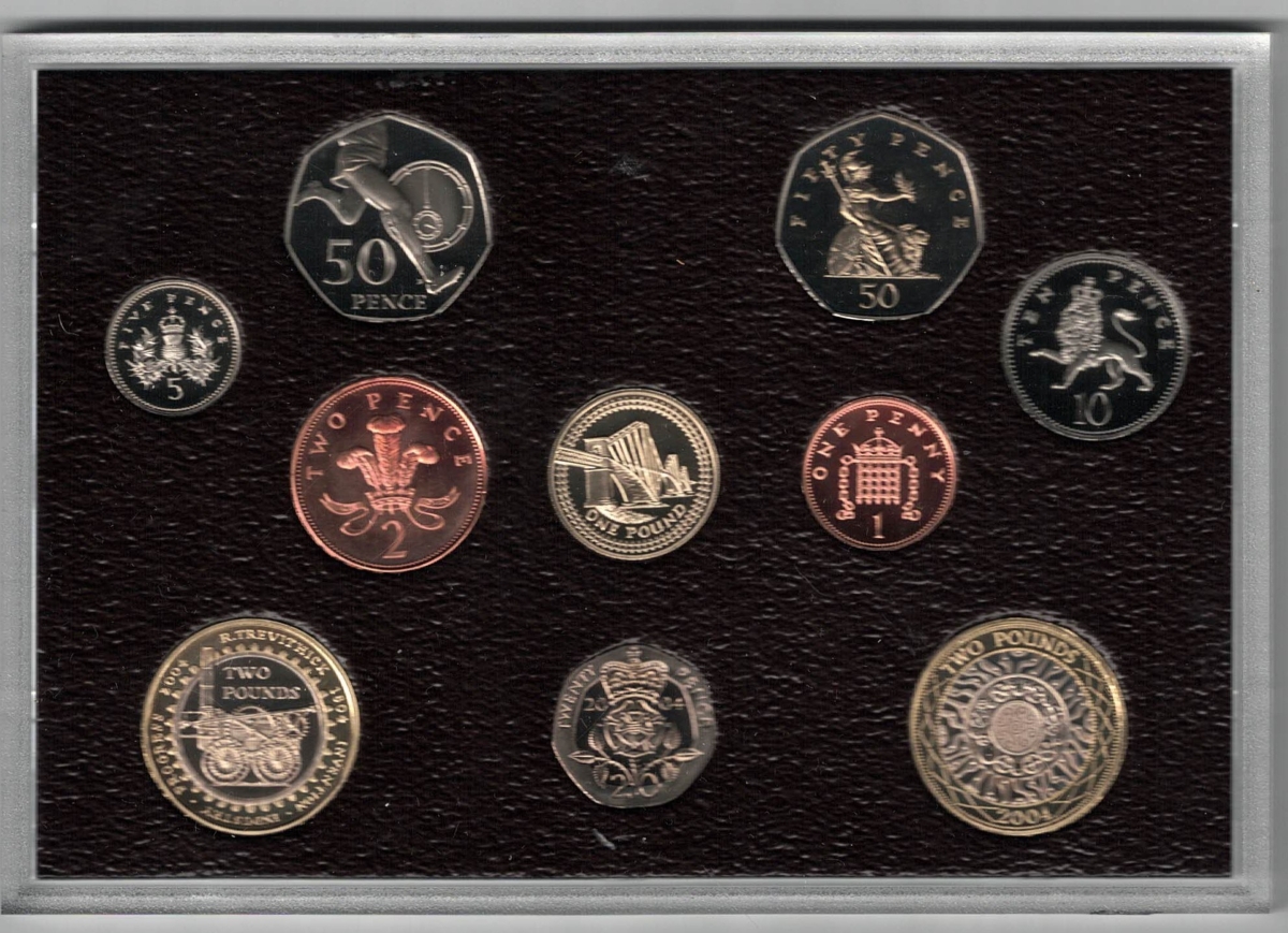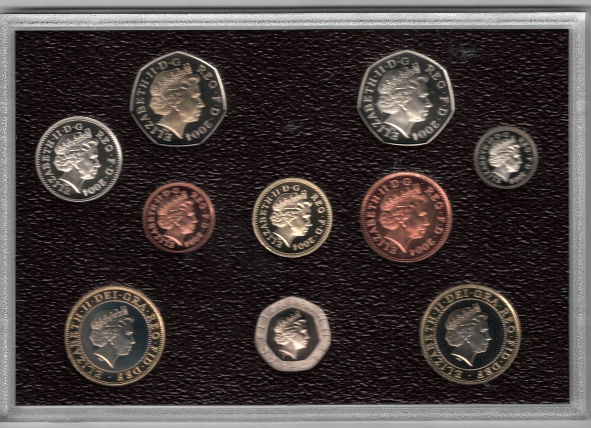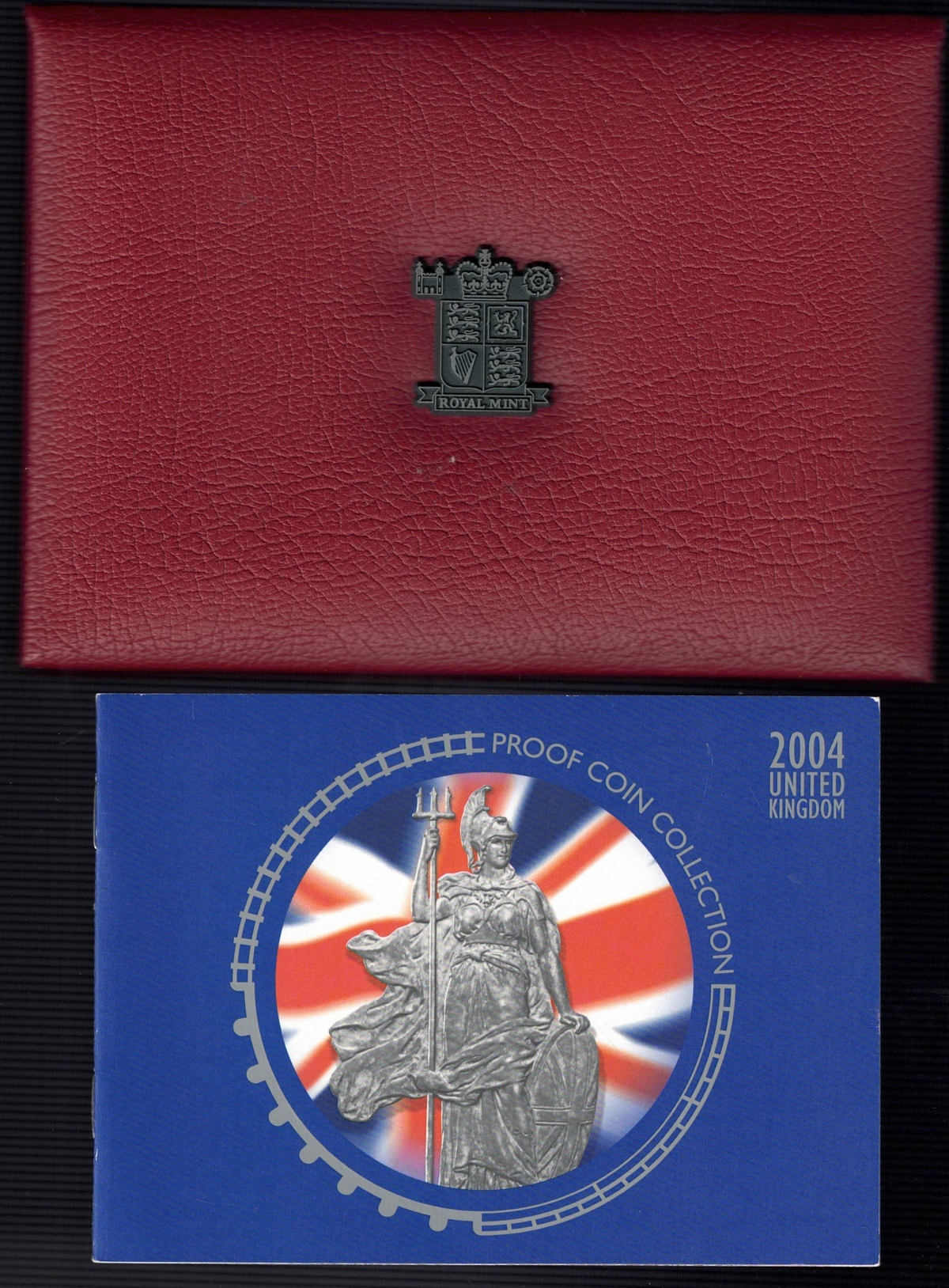 Boxed 2004 Royal Mint Base Metal Ten Coin Proof Set In Near Mint Condition.