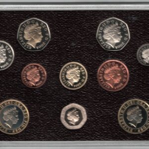 The coins in this set contains the range of UK coins from the 1p to the £2. Each Coin in this collection features the portrait of the Queen Elizabeth II. All coins in this collection have been struck to Proof Quality.