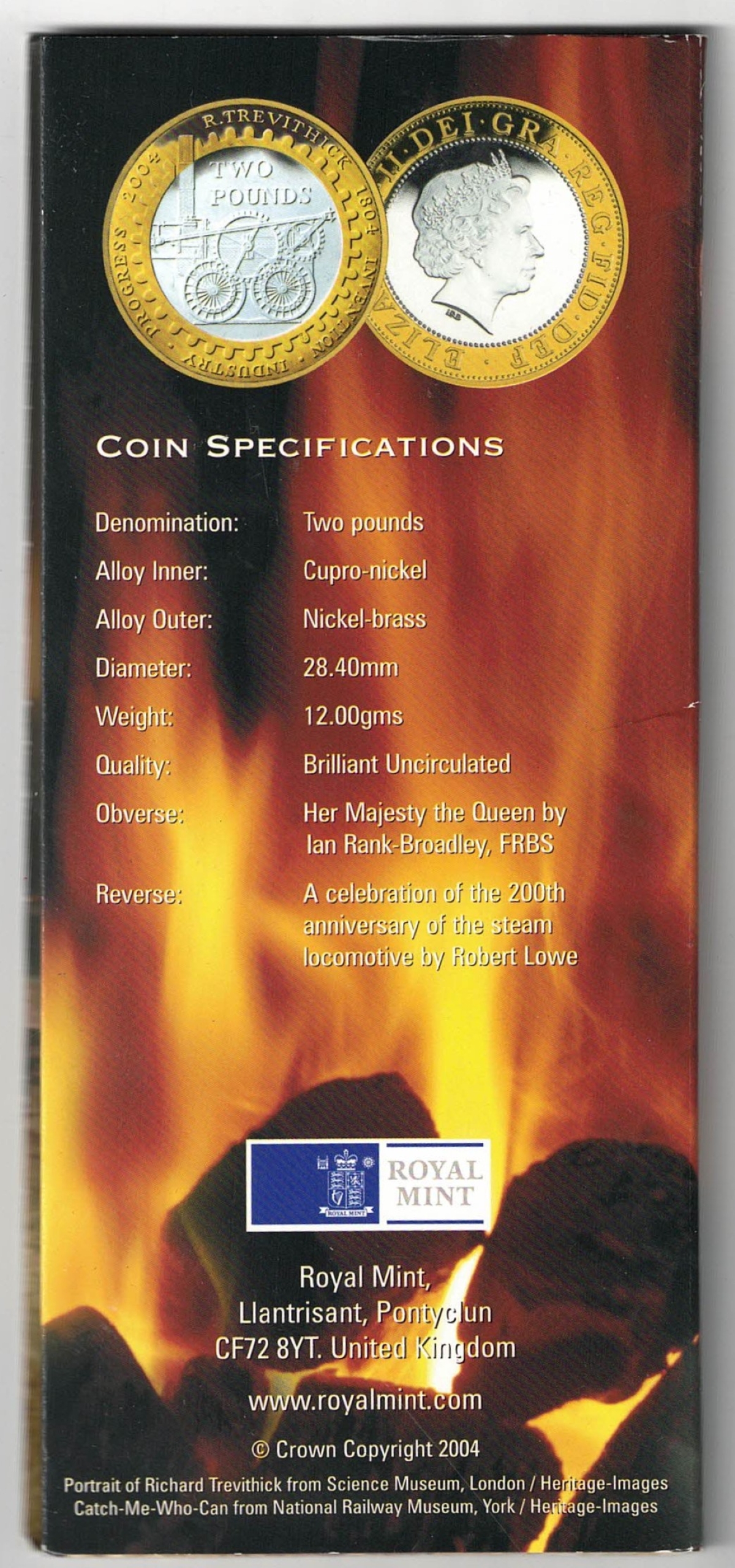 2004 Royal Mint Brilliant Uncirculated ‘200th Anniversary of the Steam Locomotive’ Two Pound Coin In Mint Condition.