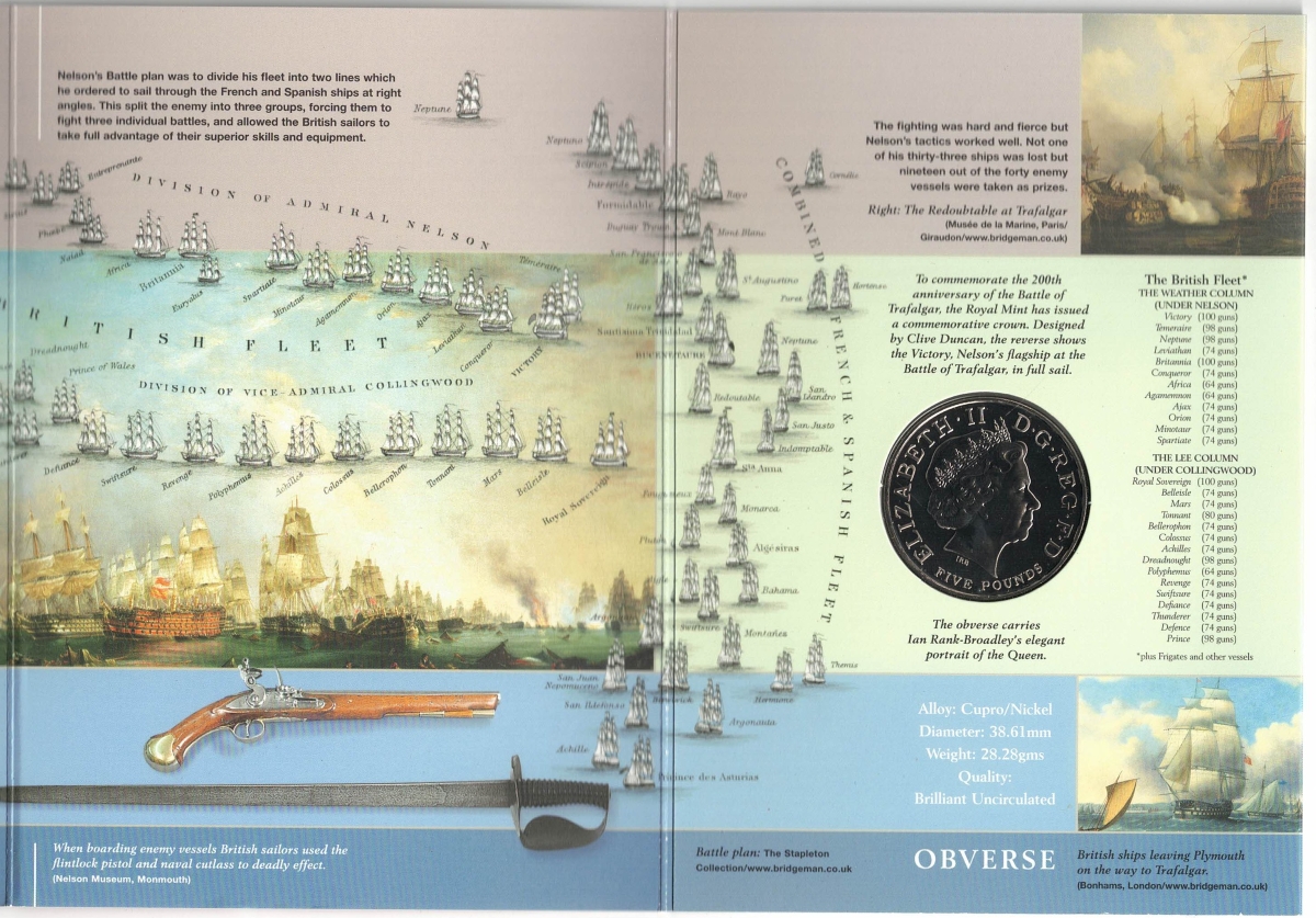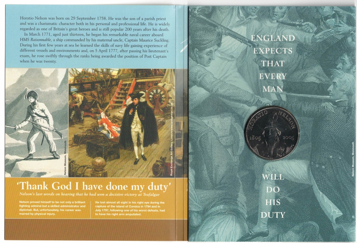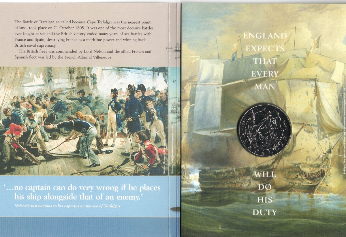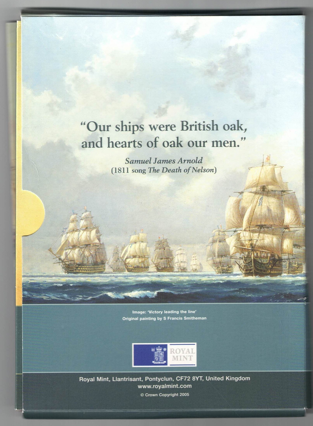 2005 Five pound coin set Nelson & Trafalgar, cupro-nickel, featuring Queen Elizabeth II on the Obverse. The coin is in stock.2005 Five pound Set – Nelson & Trafalgar
