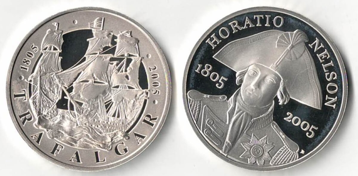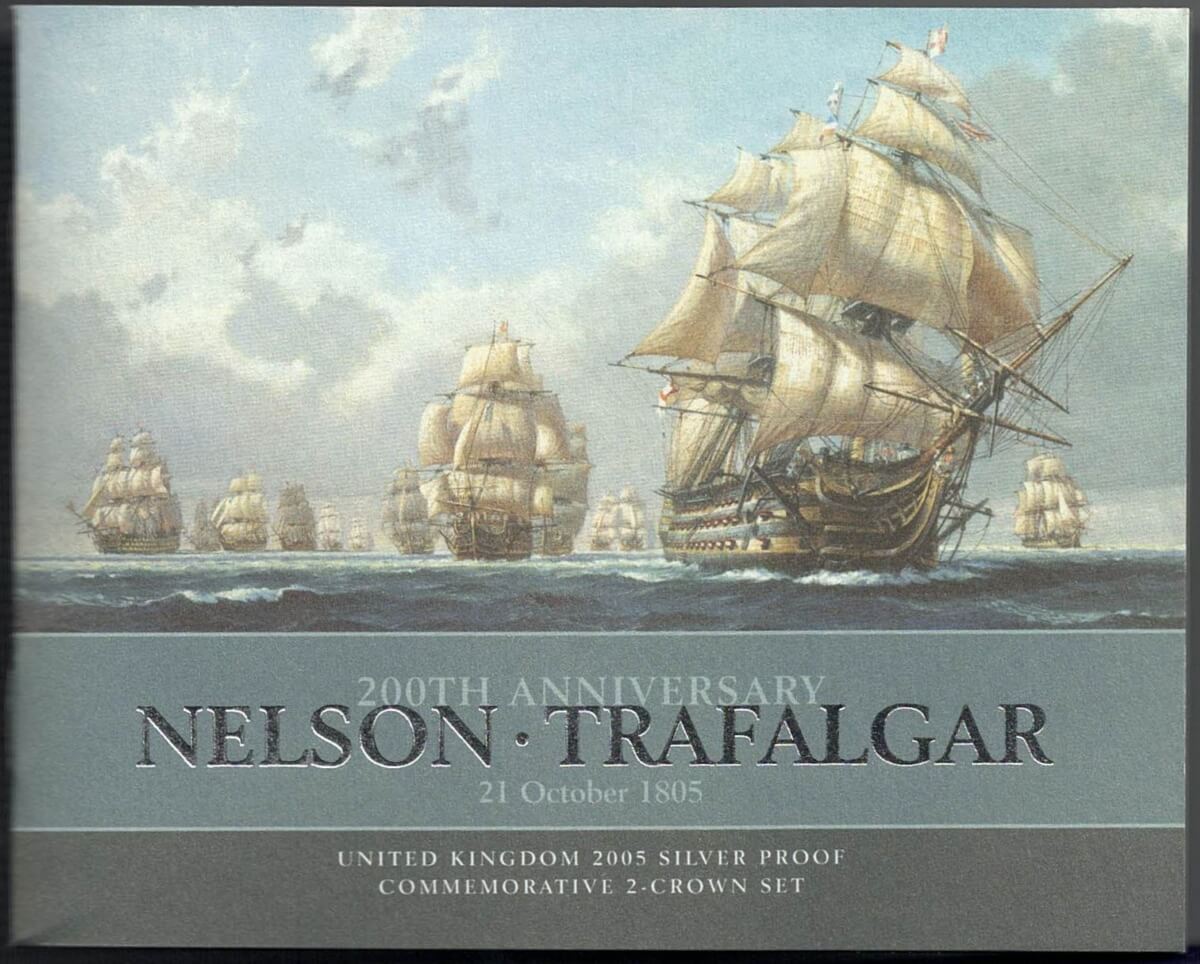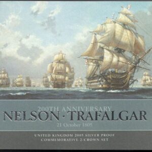 2005 Five Pound Silver Proof Set Nelson & Trafalgar. Queen Elizabeth II on obverse. All coins are in stock. You are buying a two coin set.2005 Five Pounds Silver Proof Set – Nelson & Trafalgar