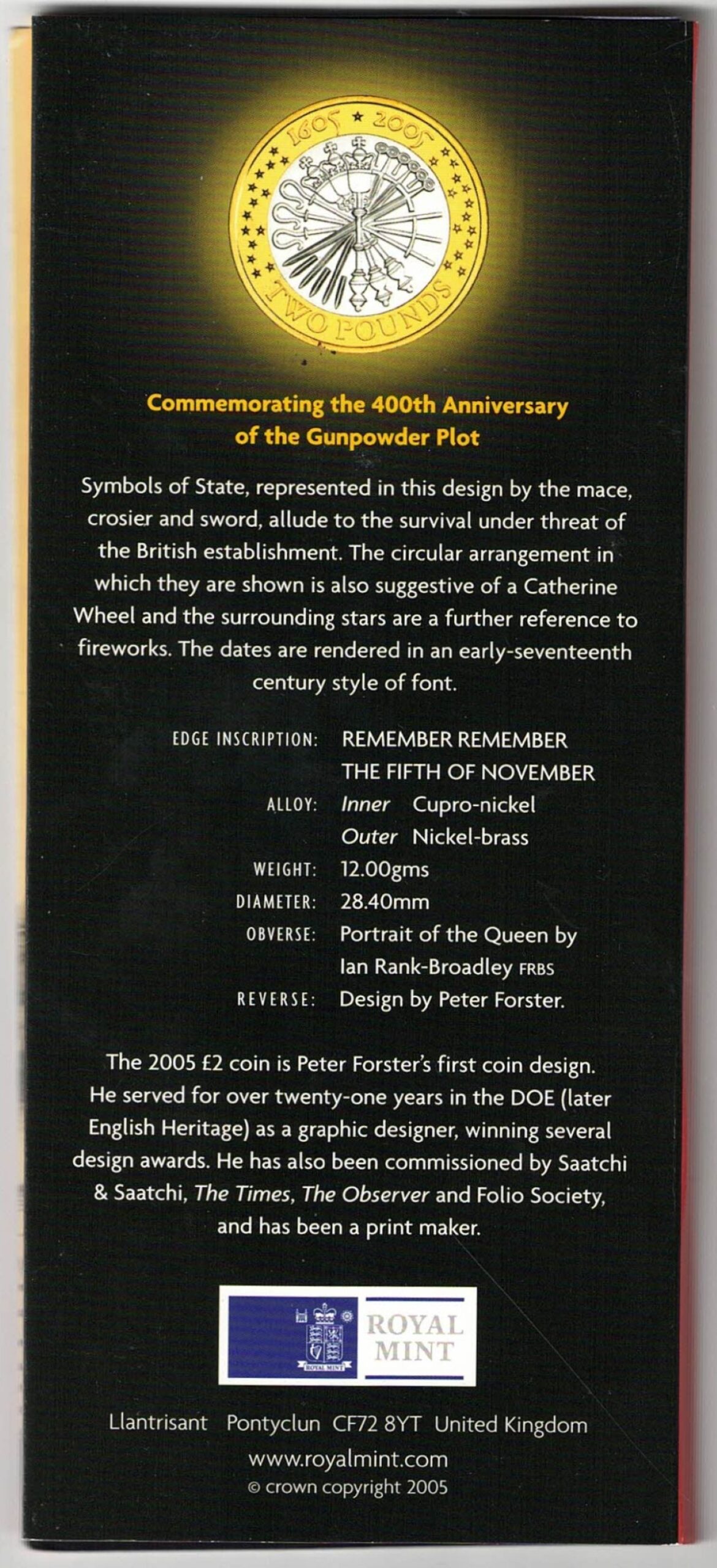 2005 Royal Mint Gunpowder Plot Two Pound Coin featuring Elizabeth II on the obverse. All coins are in stock for despatch.2005 Royal Mint Gunpowder Plot Two Pound Coin