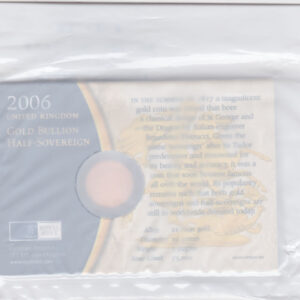 The 2006 half sovereign is a coin struck in 22 carat gold by the Royal Mint. The obverse of this coin features the fourth crowned portrait of HM Queen Elizabeth II facing right. The Queen is wearing the Girls of Great Britain and Ireland tiara, with legend around. The reverse depicts St. George slaying the dragon, with the date in exergue.