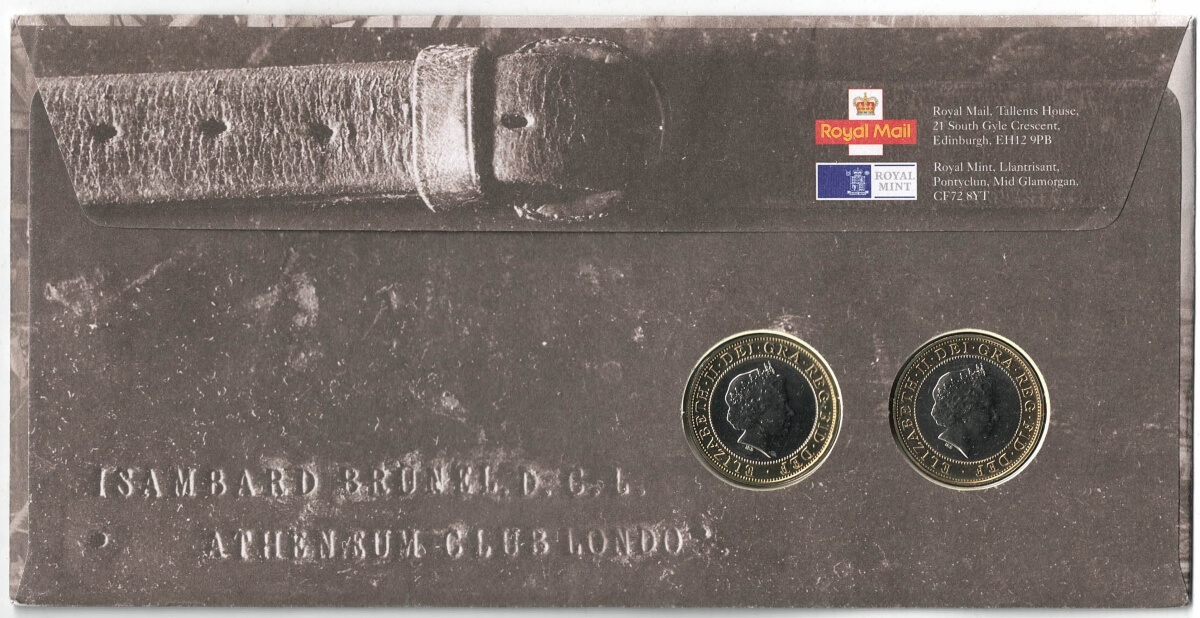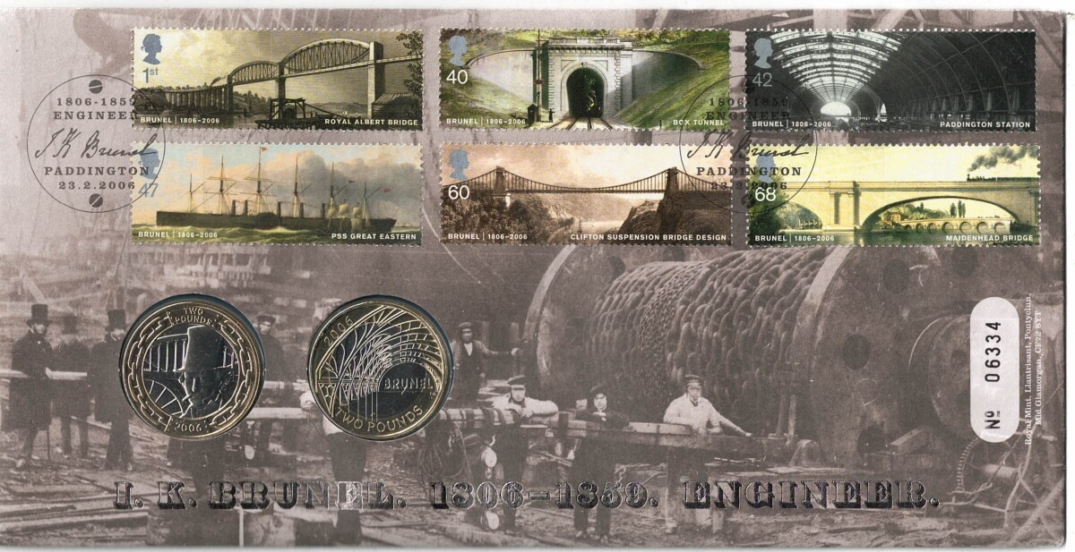 2006 Royal Mint Isambard Kingdom Brunel Brilliant Uncirculated Two Pound Two Coin Stamp cover Set In Mint Condition.