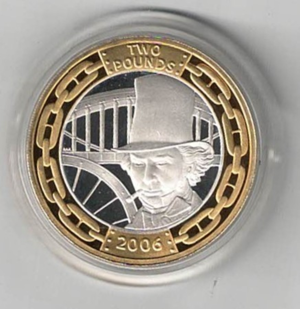 This coin commemorates the 200th anniversary of the birth of Isambard K. Brunel.
