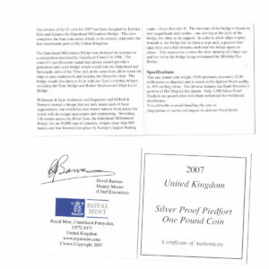 2007 One Pound Piedfort Silver Proof ‘Gateshead Millennium Bridge’ Coin In Near Mint Condition.