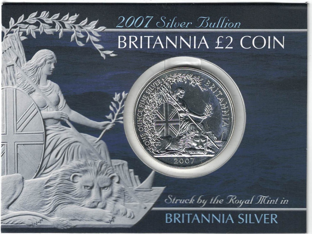 2007 One Ounce Silver Britannia £2 coin in Near Mint Condition.