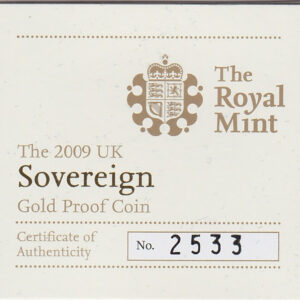 2009 Elizabeth II Gold Proof Full Sovereign Coin Mint Condition.