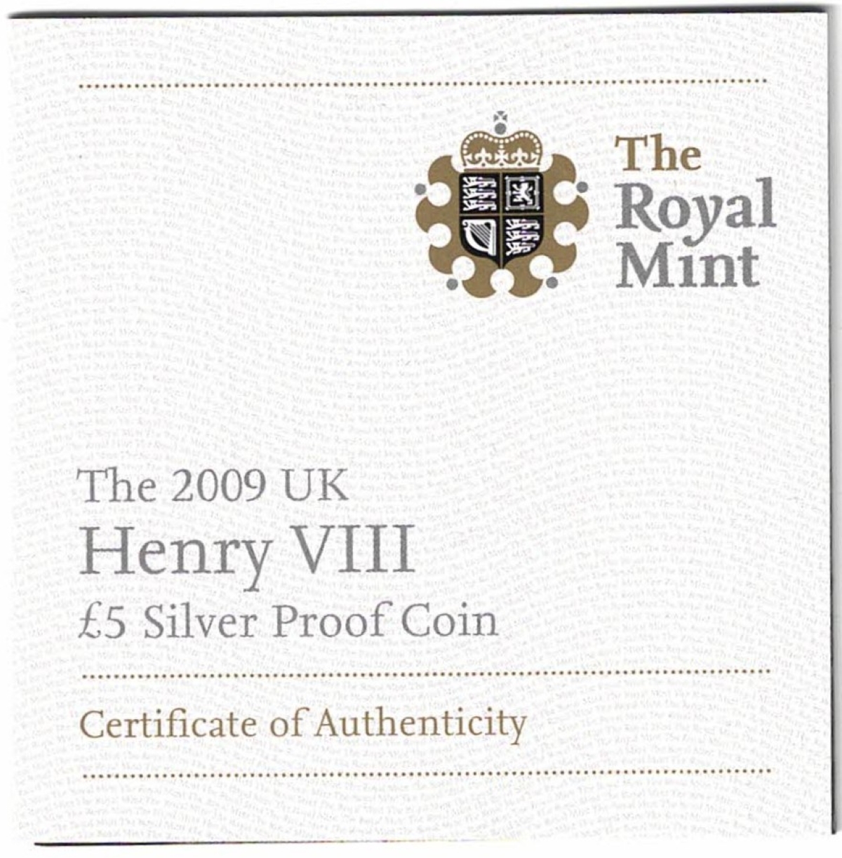 2009 Silver Proof Standard Five Pound Henry VIII