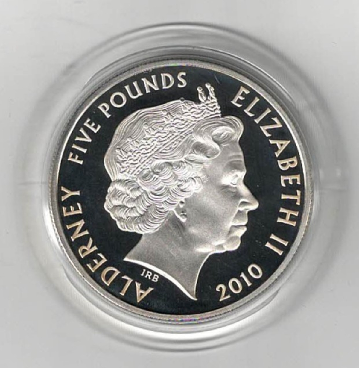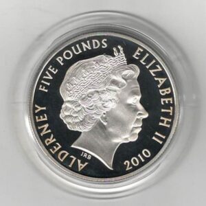 2010 Alderney Battle Of Britain Silver Proof Five Pound Coin In Near Mint Condition.