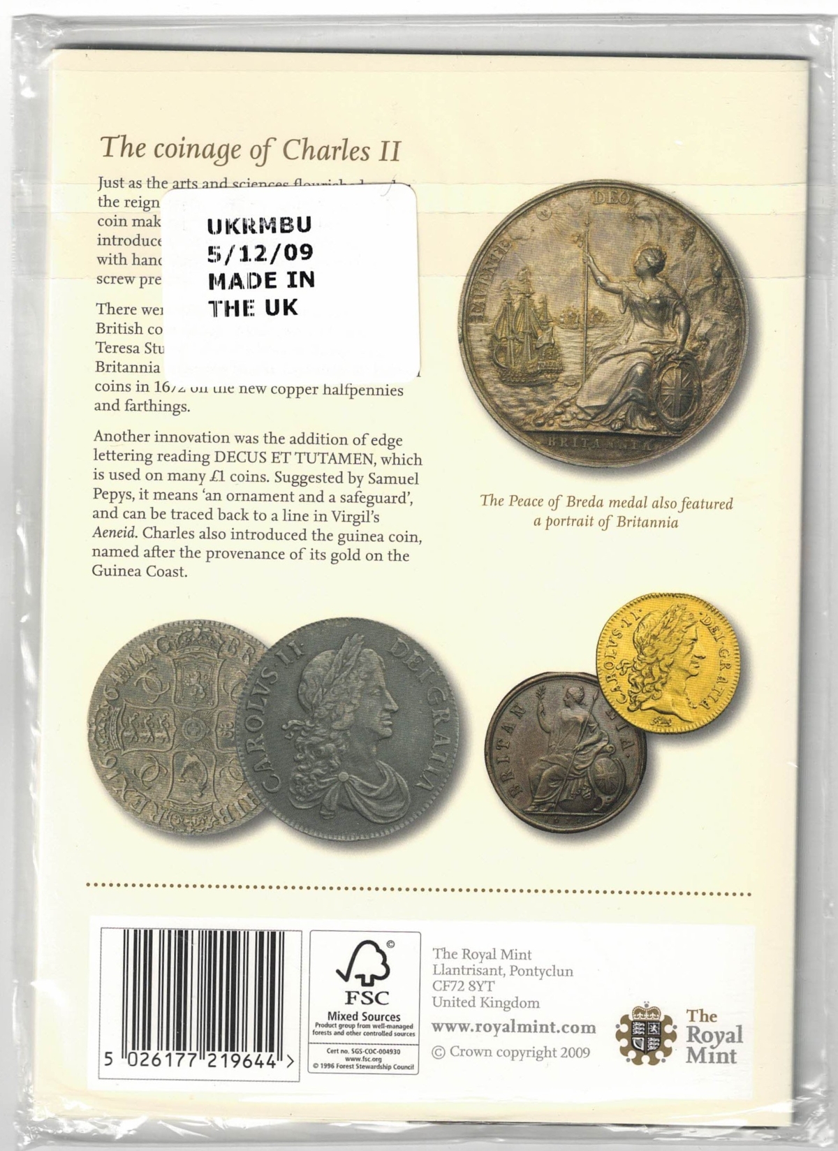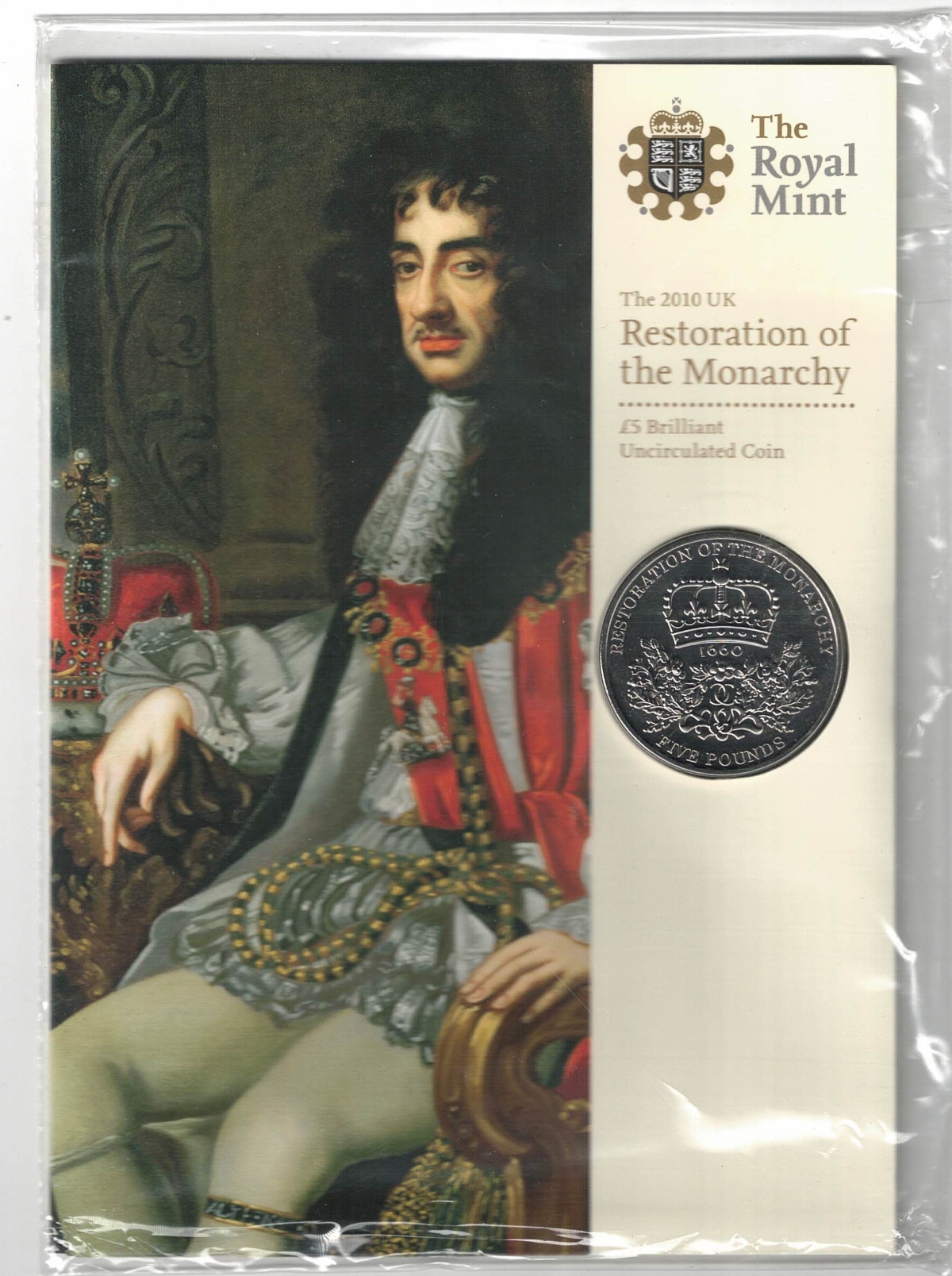 2010 Five Pound Brilliant Uncirculated Coin Restoration of the Monarchy, marking the 350th anniversary of the Restoration of the Monarchy.