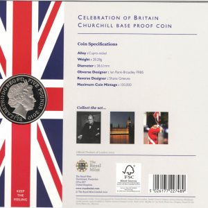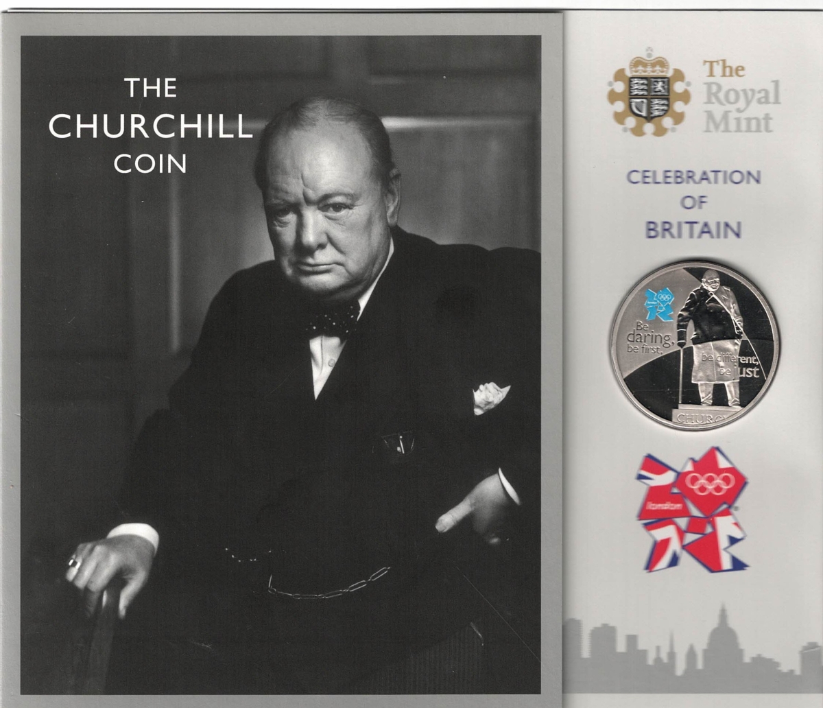 The Obverse features the fourth crowned portrait of HM Queen Elizabeth II facing right. The Reverse features the statue of Winston Churchill in Parliament Square accompanied by the London 2012 logo and a quotation from Anita Roddick.
