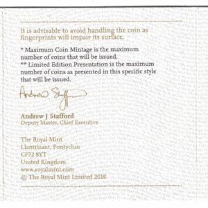 This coin comes in the original Black Box, capsule with certificate/booklet as issued by the Royal Mint.