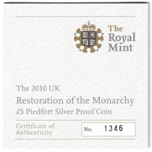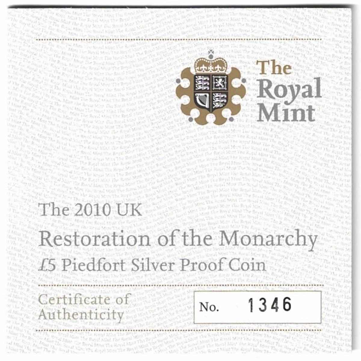 2010 Silver Proof Piedfort Five Pound Coin ‘Restoration of the Monarchy’ In Near Mint Condition.