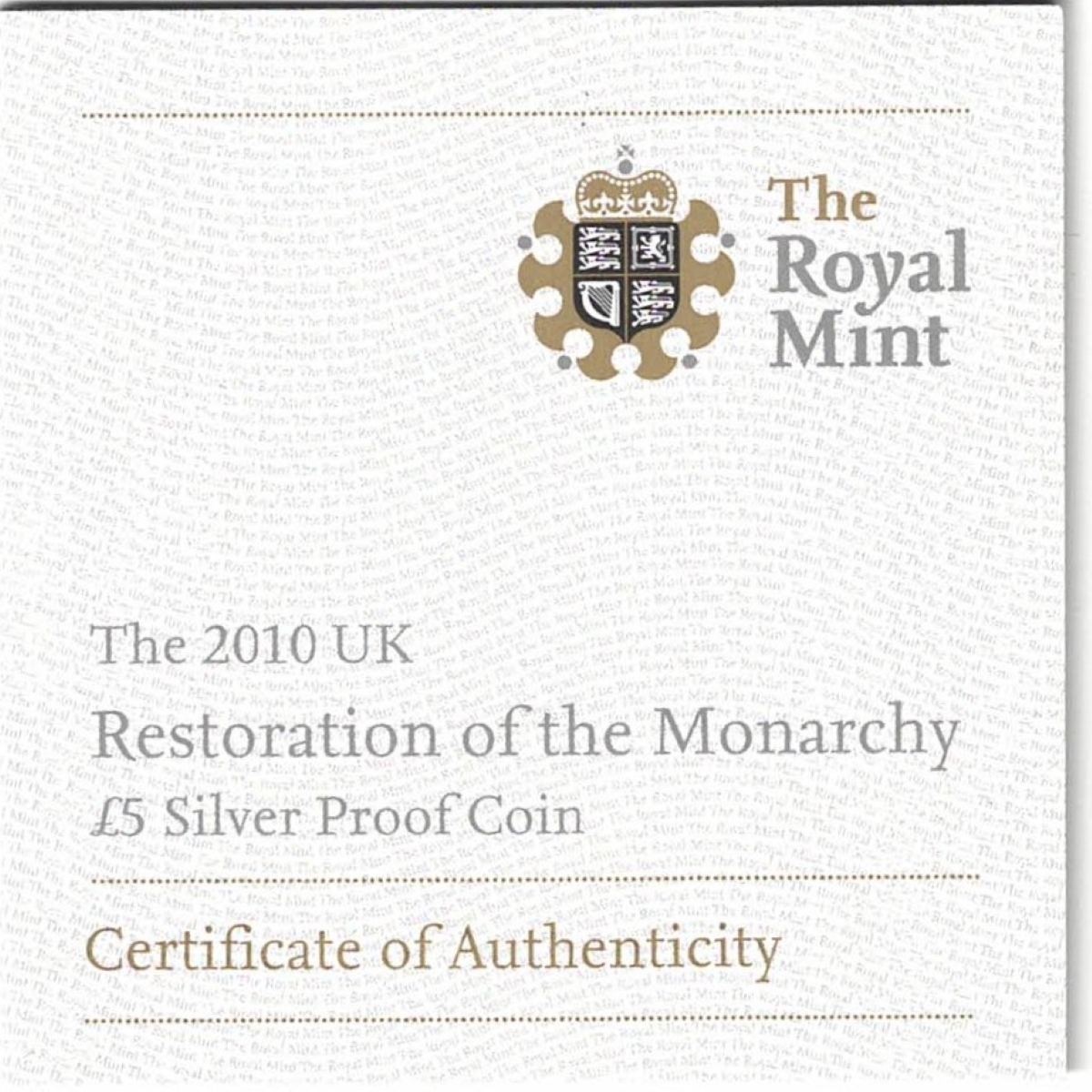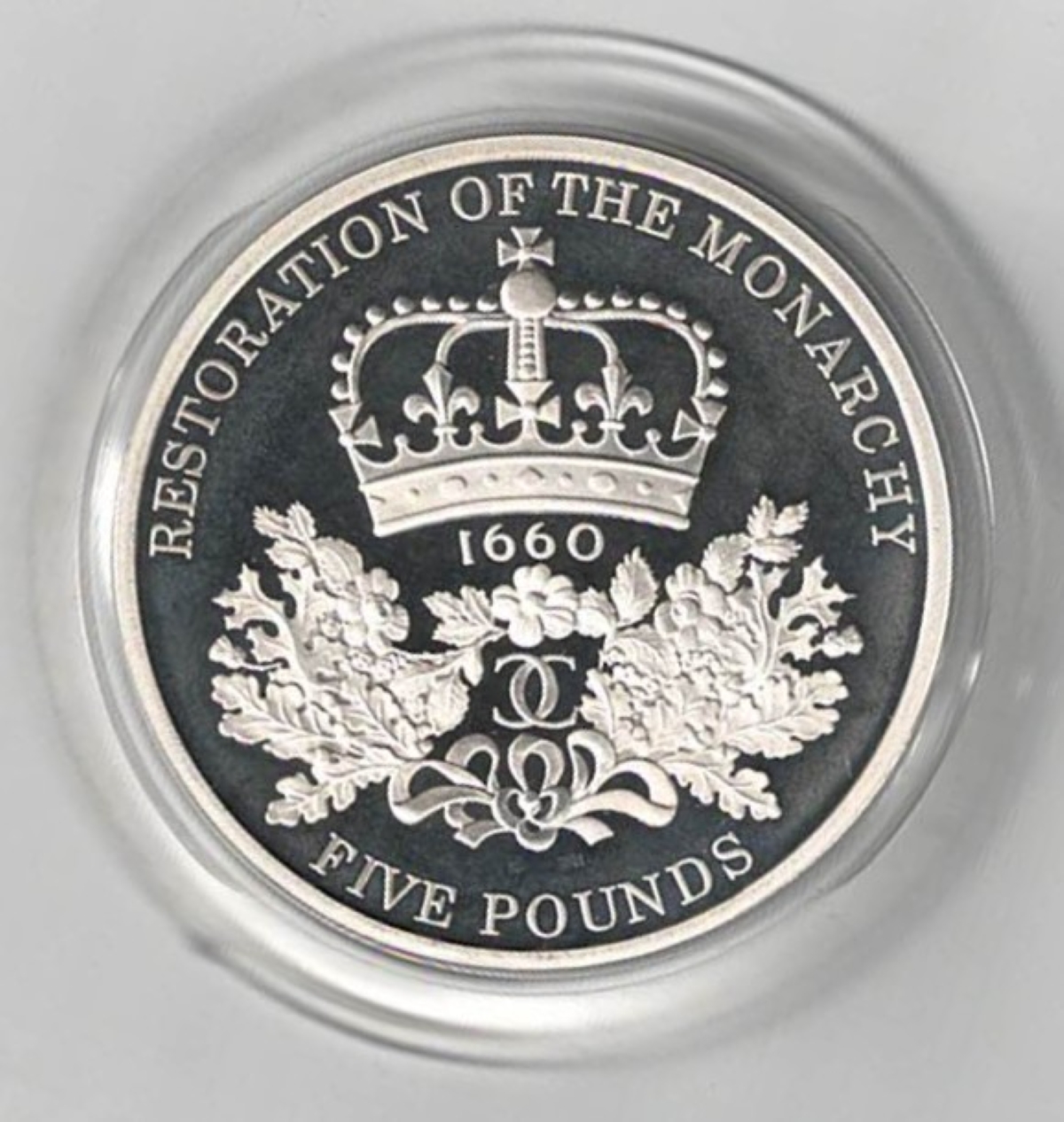 2010 Silver Proof Standard Five Pound Coin ‘Restoration of the Monarchy’ In Near Mint Condition.