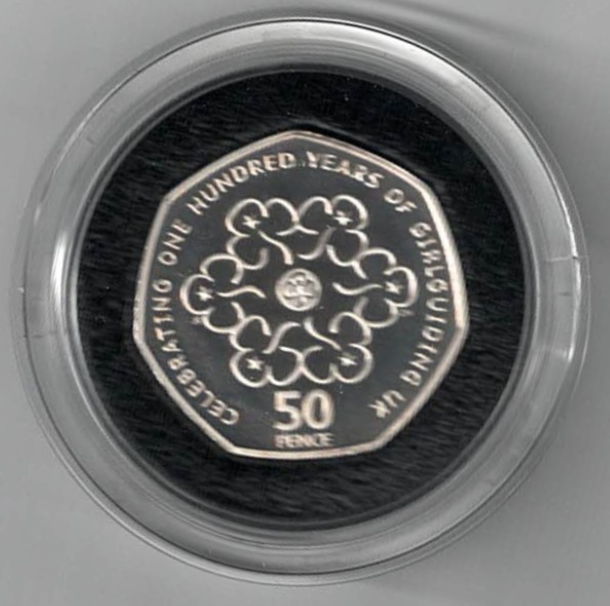 This is a commemorative coin to mark the 100th anniversary of Girl Guides.