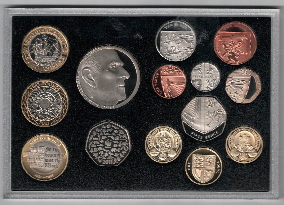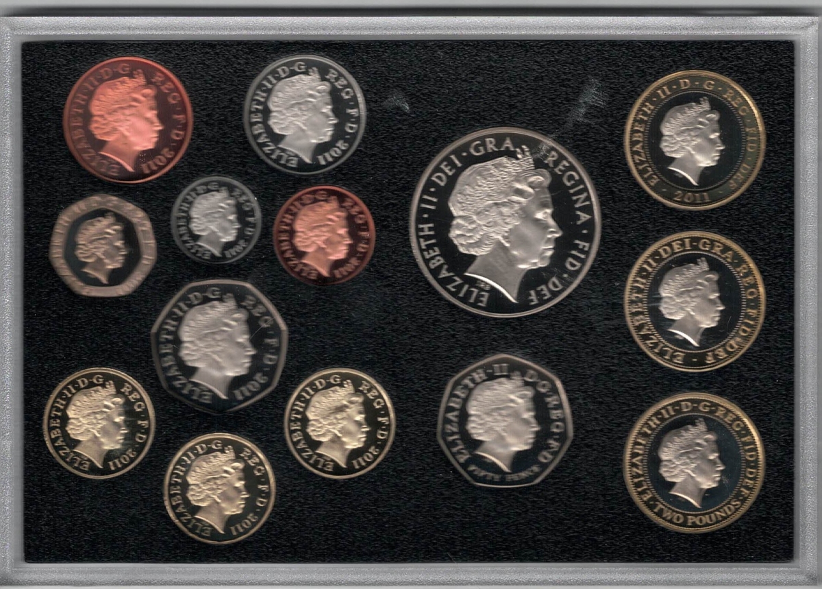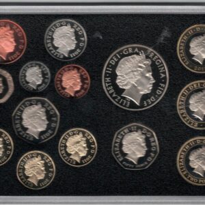 The coins in this set contains the range of UK coins from the 1p to the £5. Each Coin in this collection features the portrait of the Queen Elizabeth II. All coins in this collection have been struck to Proof Quality.