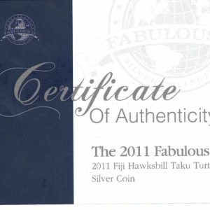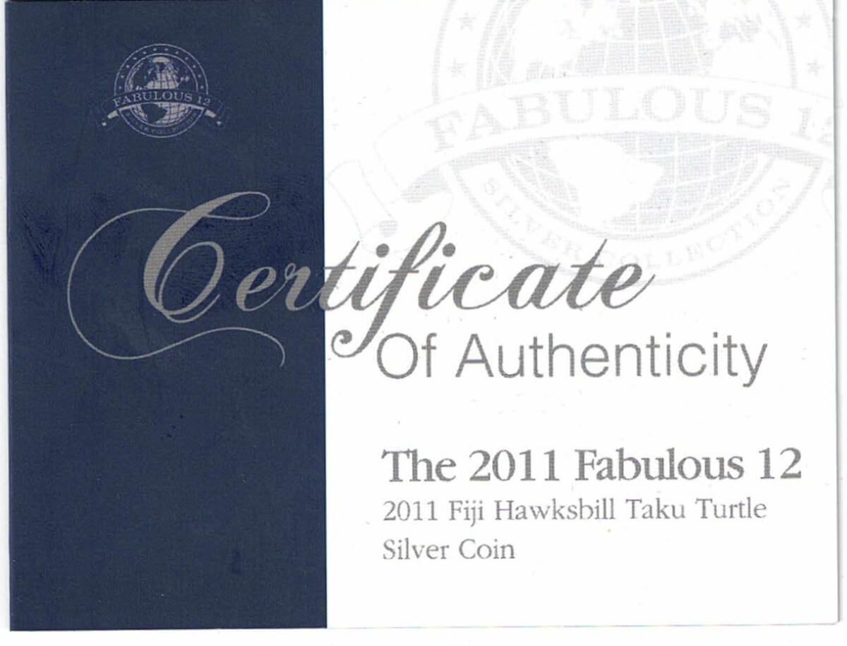 2011 Fiji Silver One Ounce Hawksbill Taku Turtle Coin