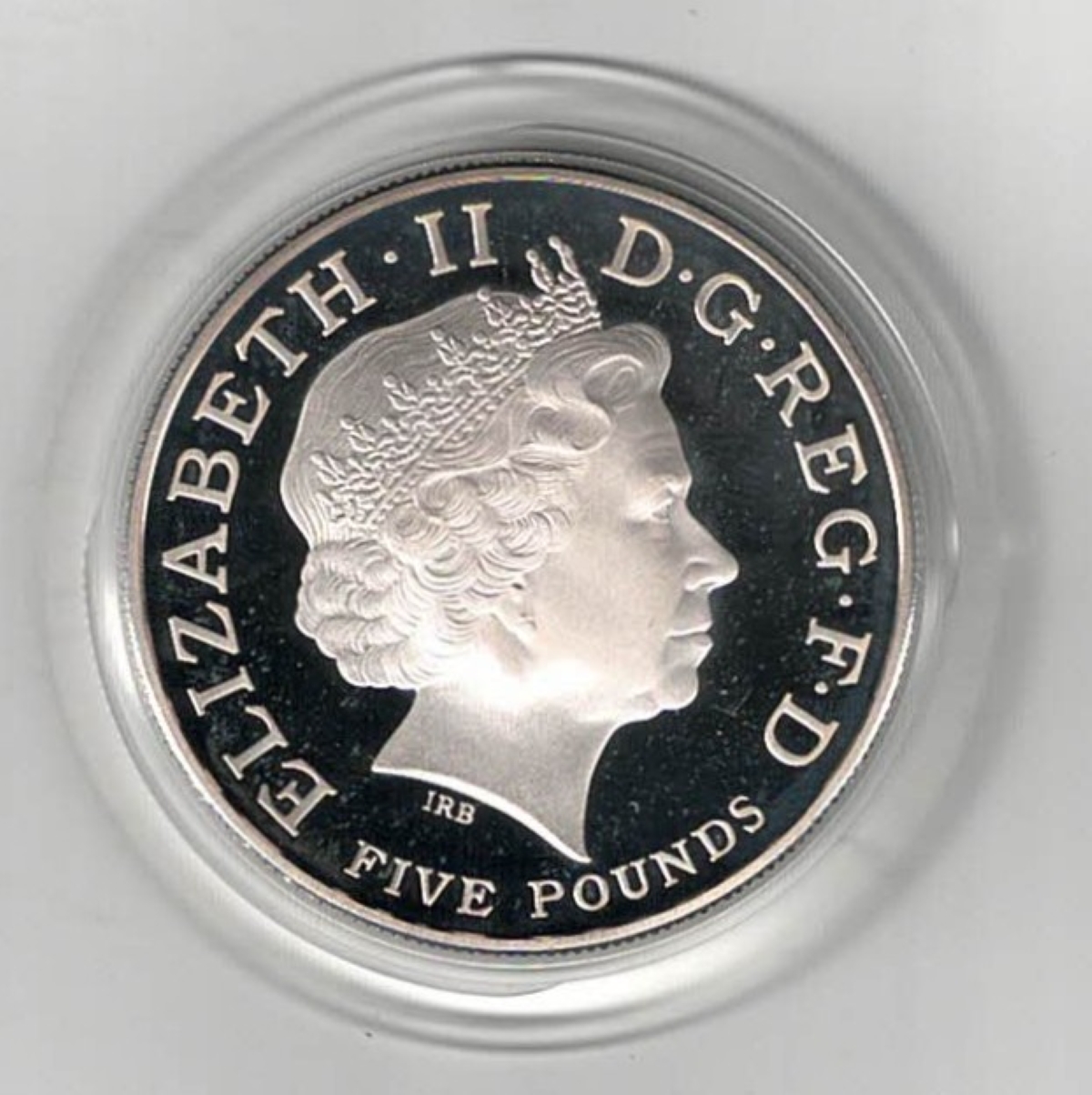 This coin has an intrinsic value of £5. There is very slight tarnishing on this coin.