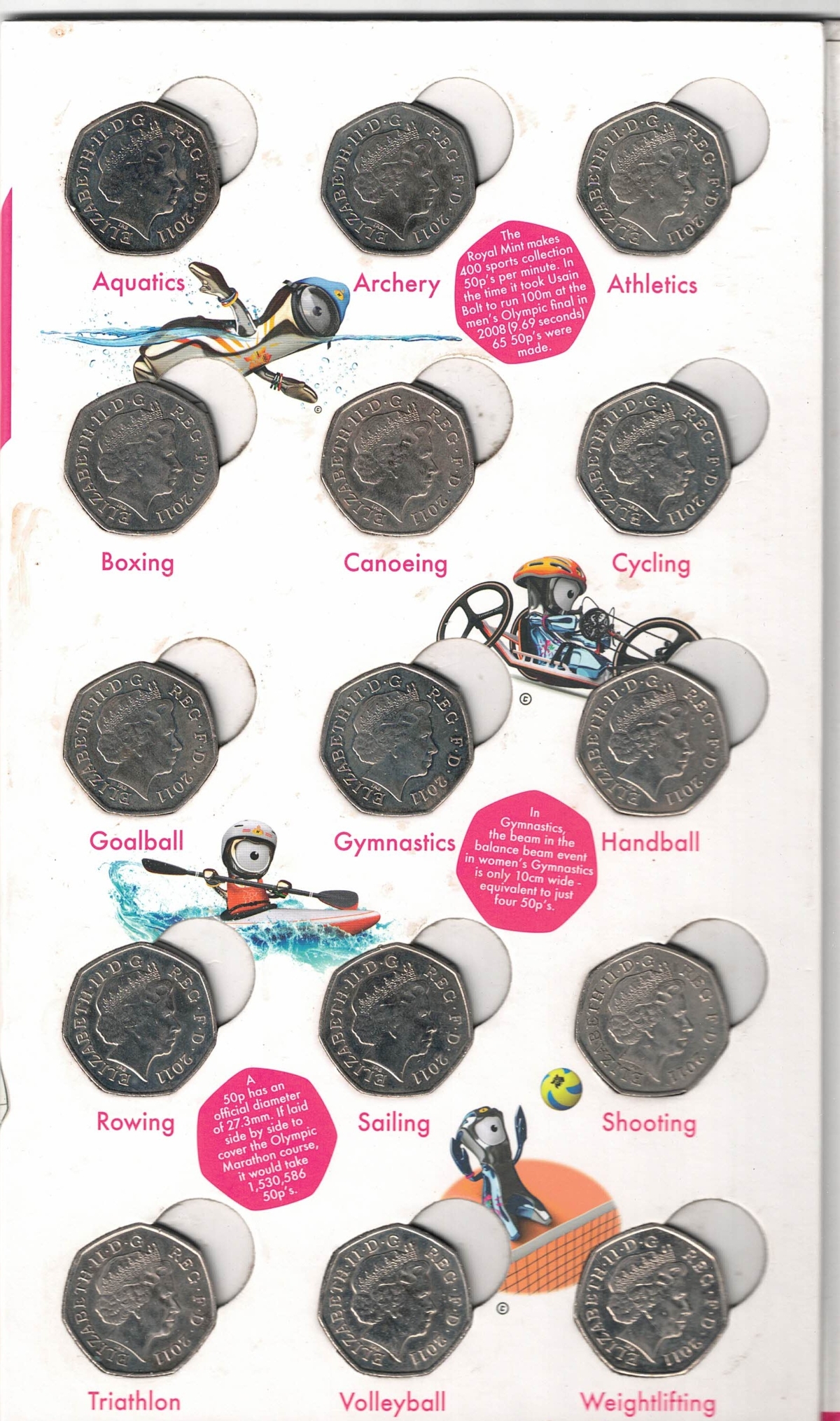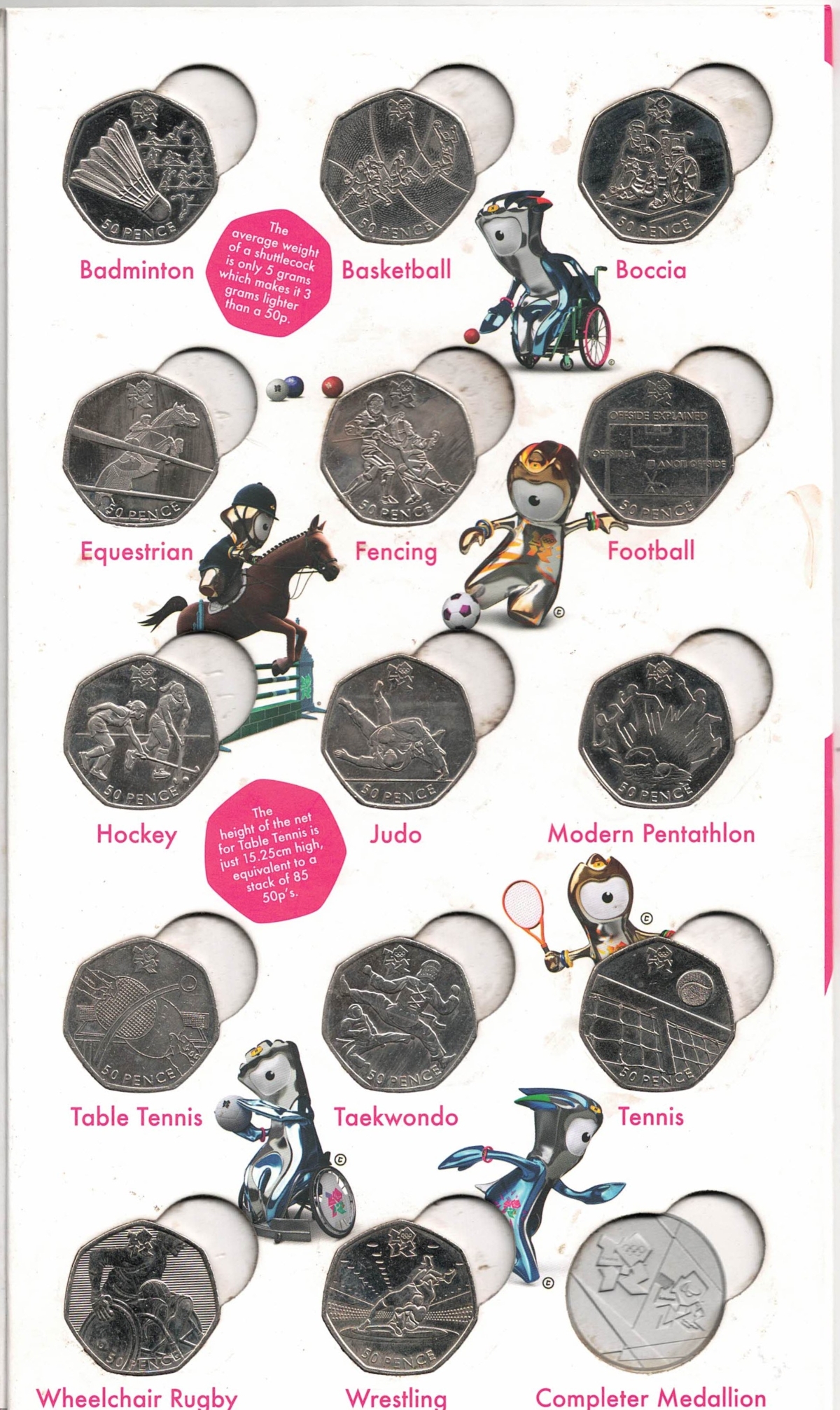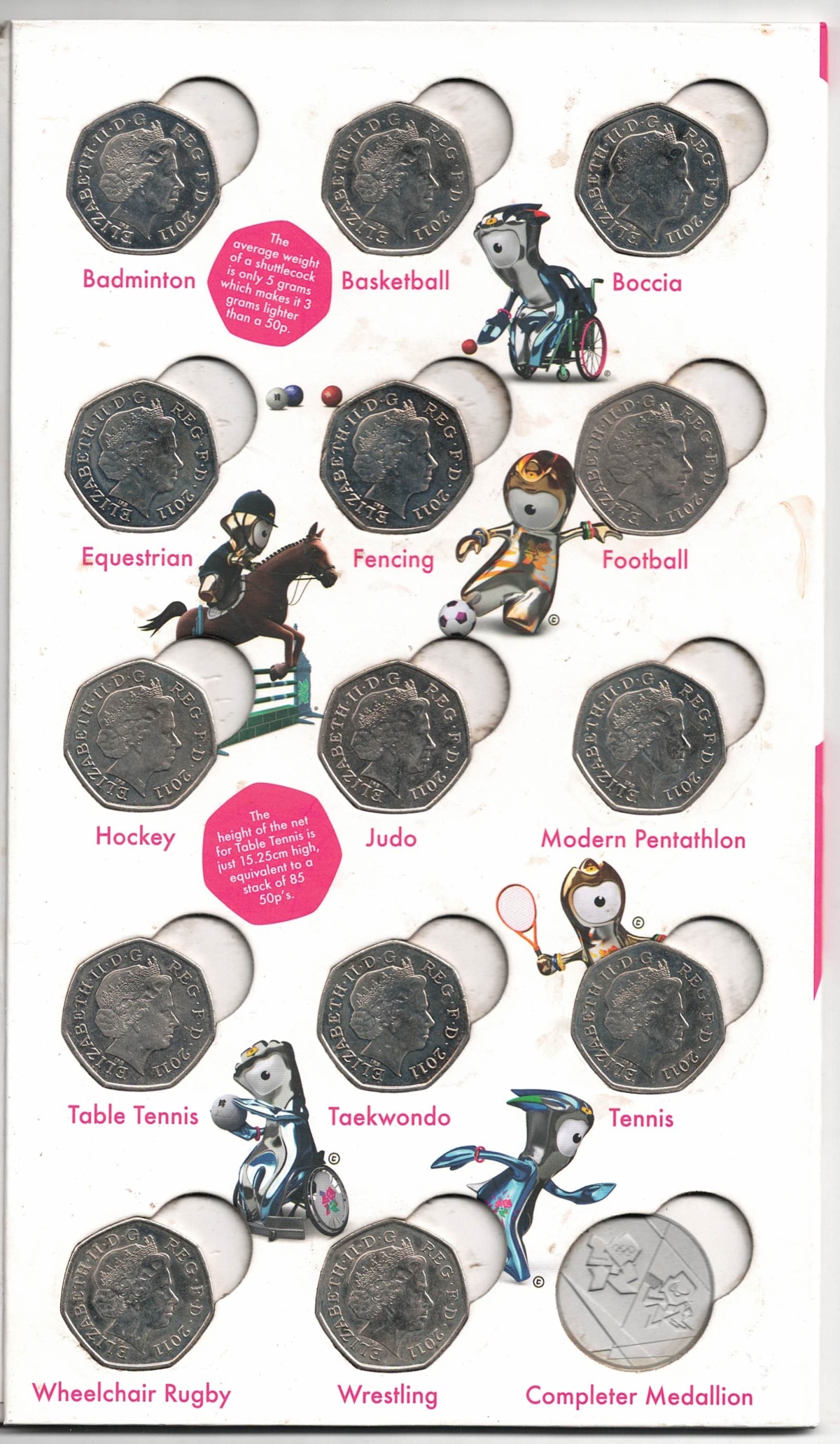 Full Set Of Twenty Nine 2011 London 2012 Olympic Fifty Pence Sports Collection Coins In Near Mint Condition.