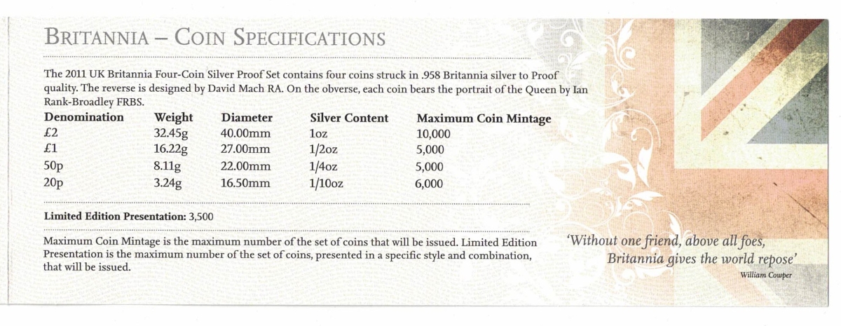 You are buying the 2011 silver four coin Britannia set in the pictures.