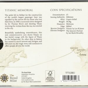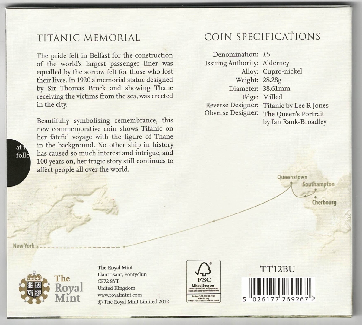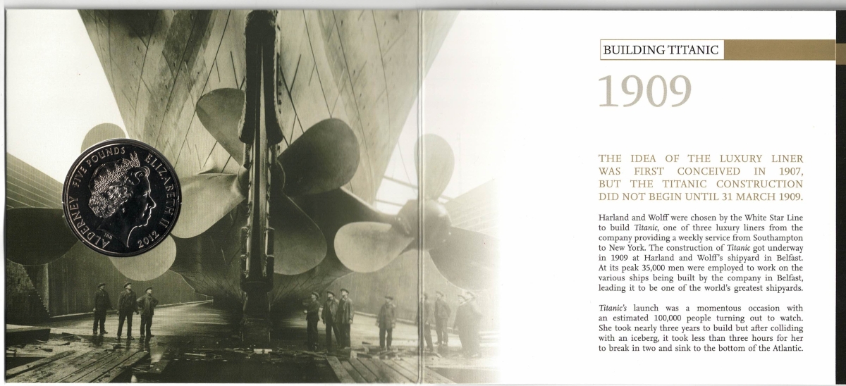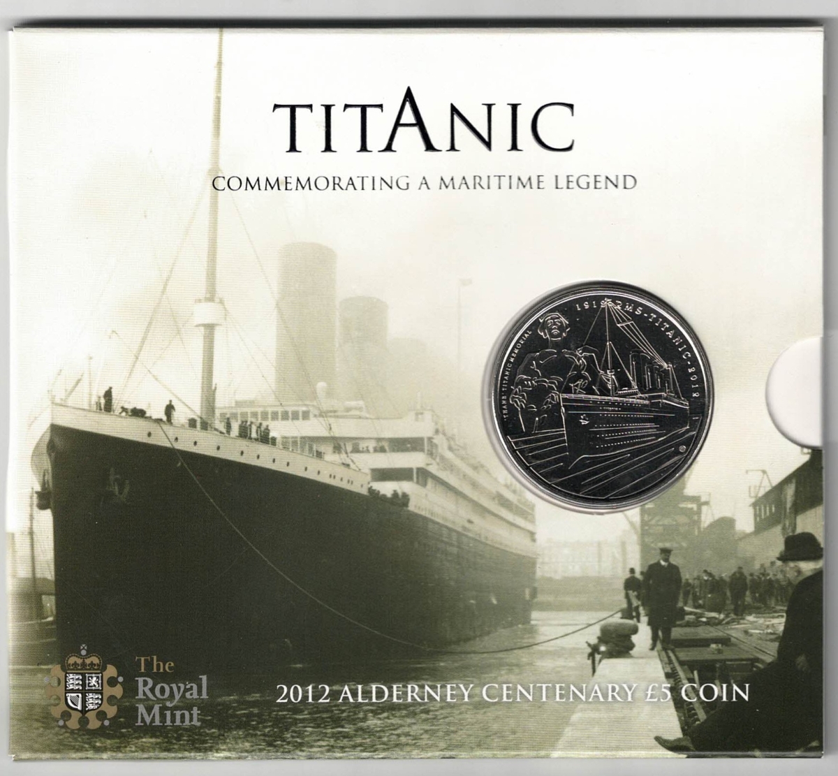 2012 Alderney Titanic Centenary Five Pound Coin In Near Mint Condition.