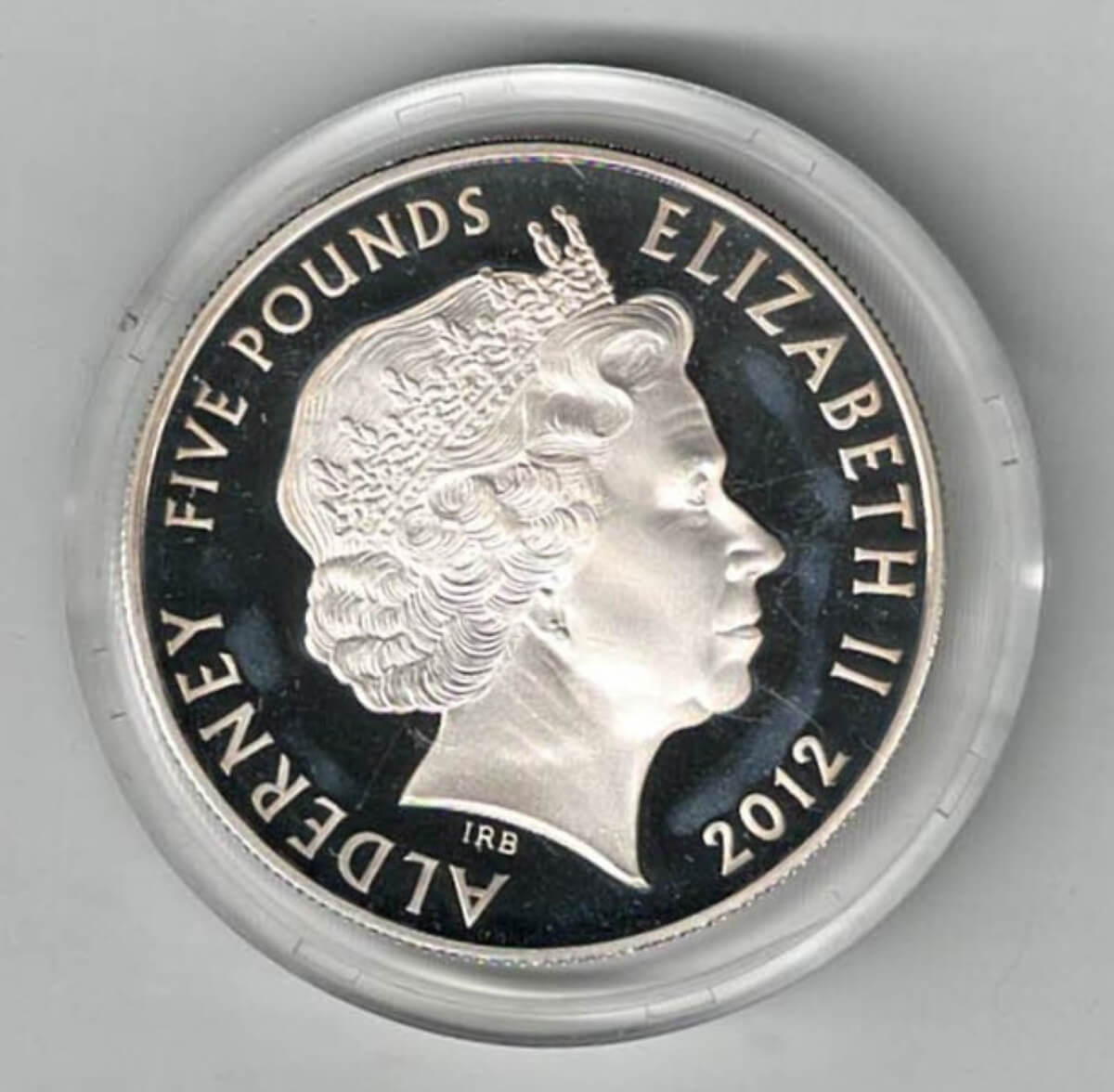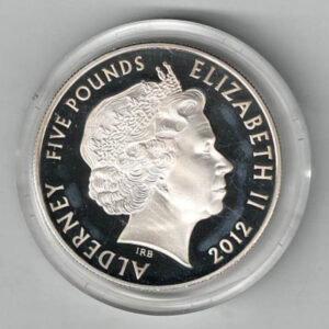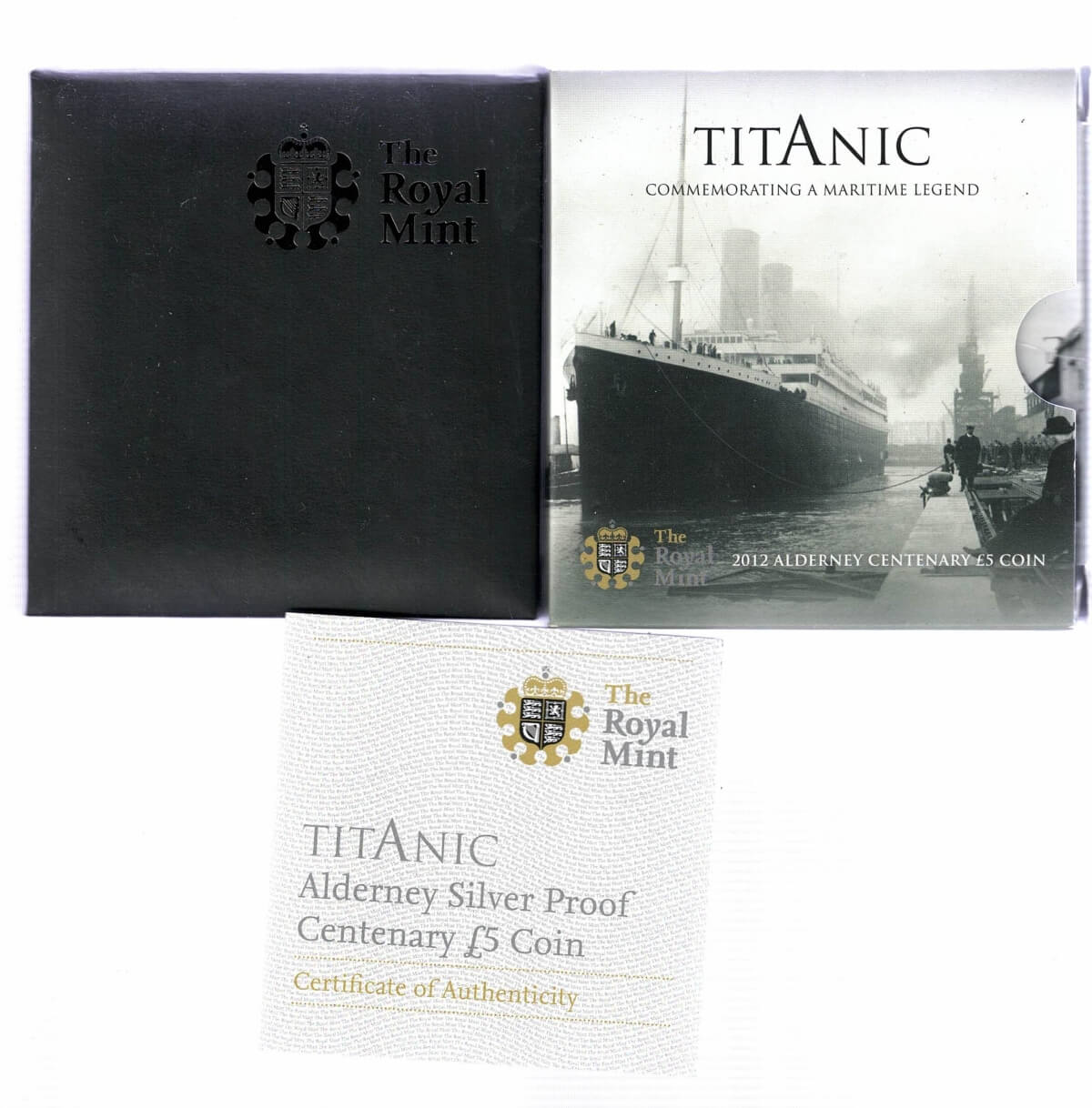 2012 Alderney Titanic Centenary Silver Proof Five Pound Coin In Near Mint Condition.