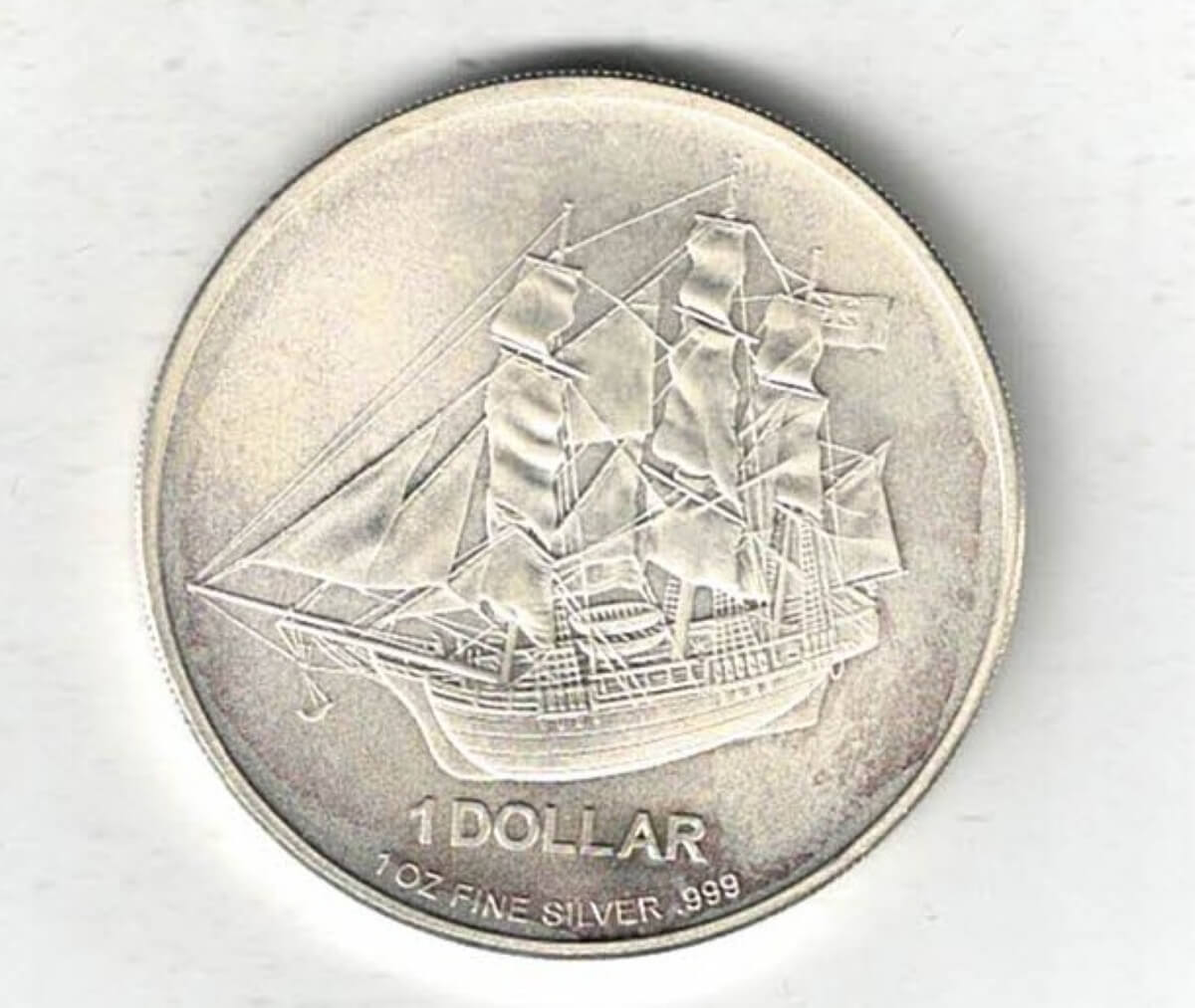 2012 Cook Islands Silver One Ounce Bounty Ship Coin In Near Mint Condition.