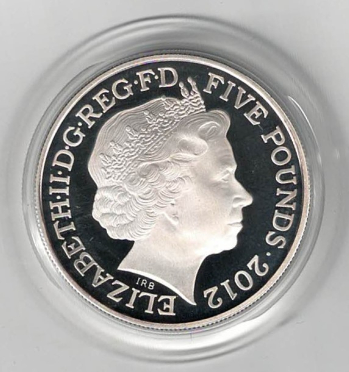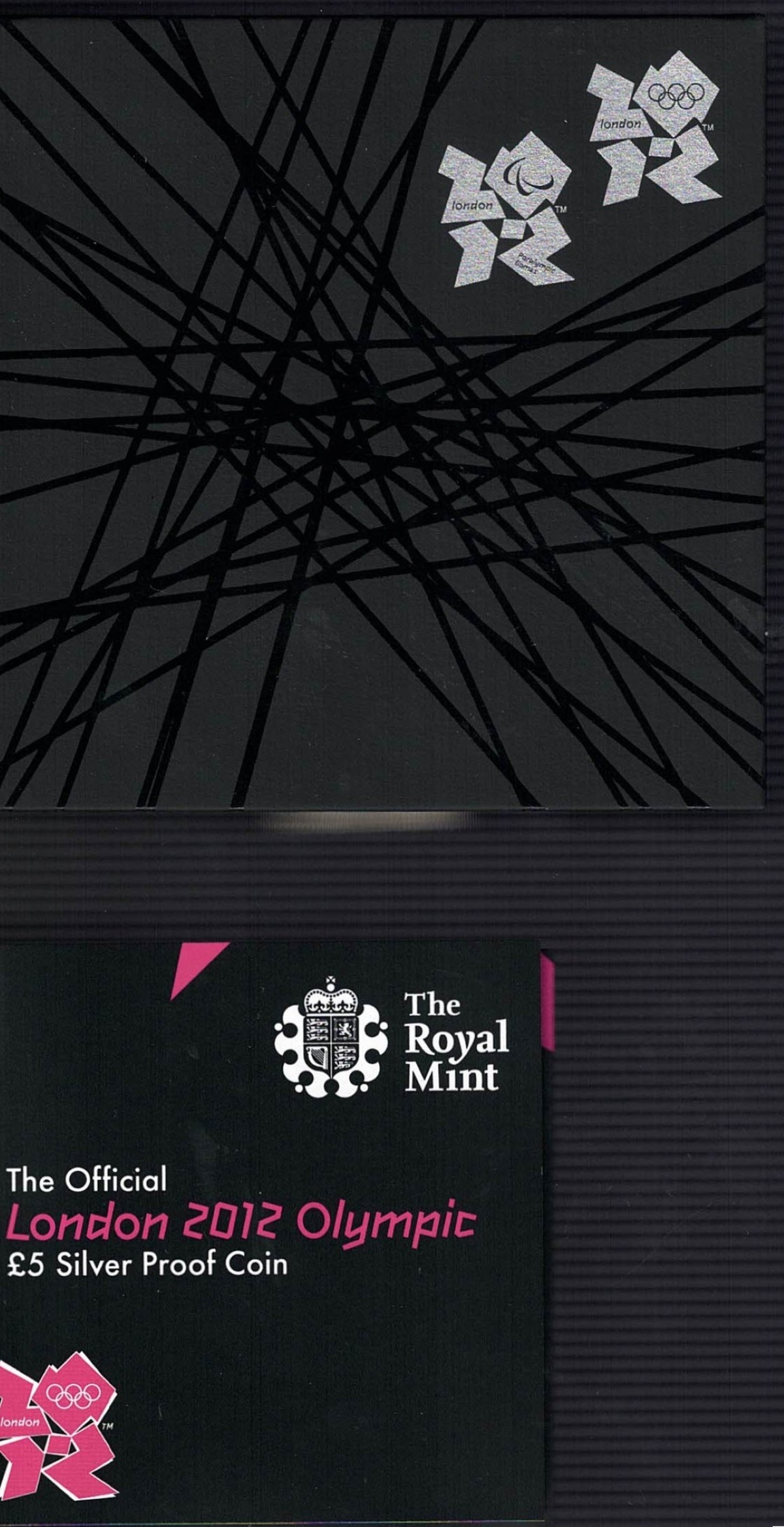 2012 Five Pound Silver Proof Coin London 2012 Olympics, In Near Mint Condition.