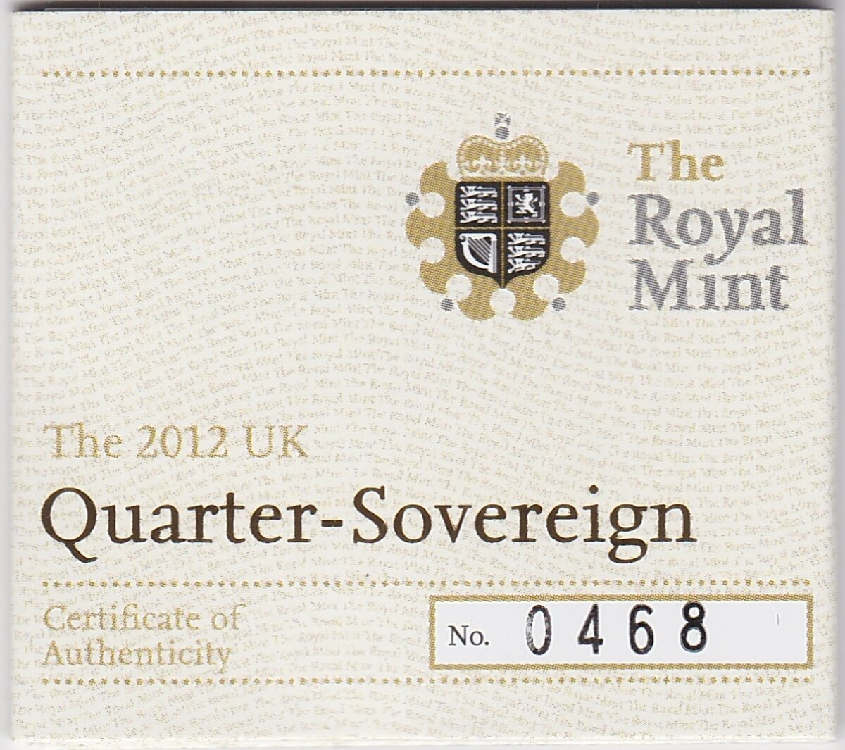 You are buying the 2012 Gold Proof Quarter Sovereign coin in the pictures.