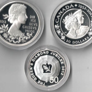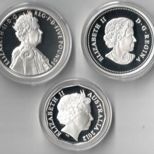 2012 Silver Proof Queens Diamond Jubilee Three Coin set, from Great Britain, Canada and Australia. In stock and ready to post.2012 Silver Proof Queens Diamond Jubilee Three Coin set