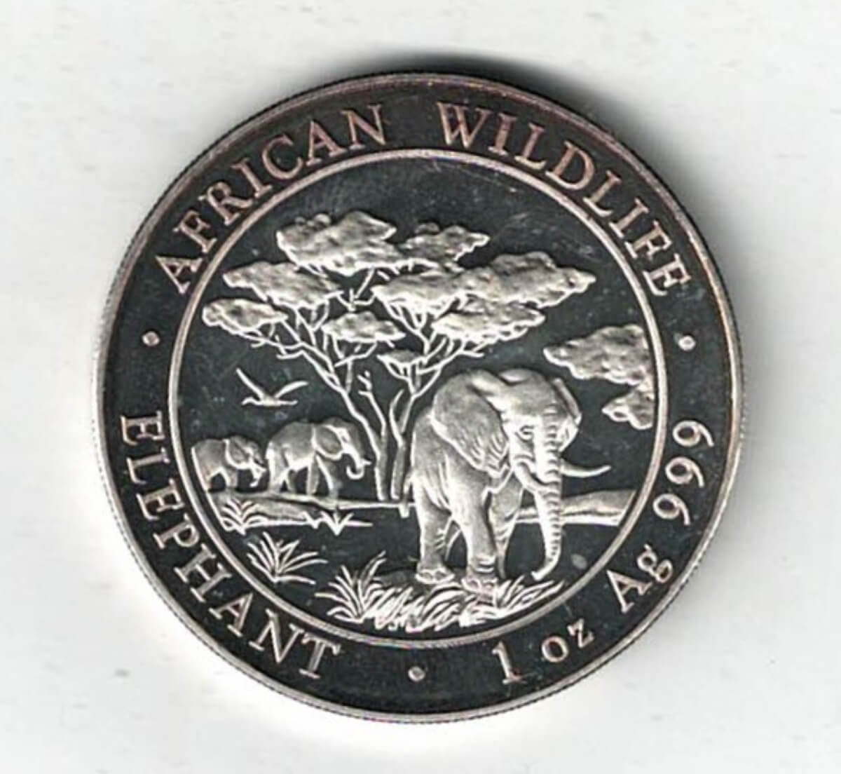 This 2012 coin was struck in fine silver. The Reverse Features an Elephant in the Grass.