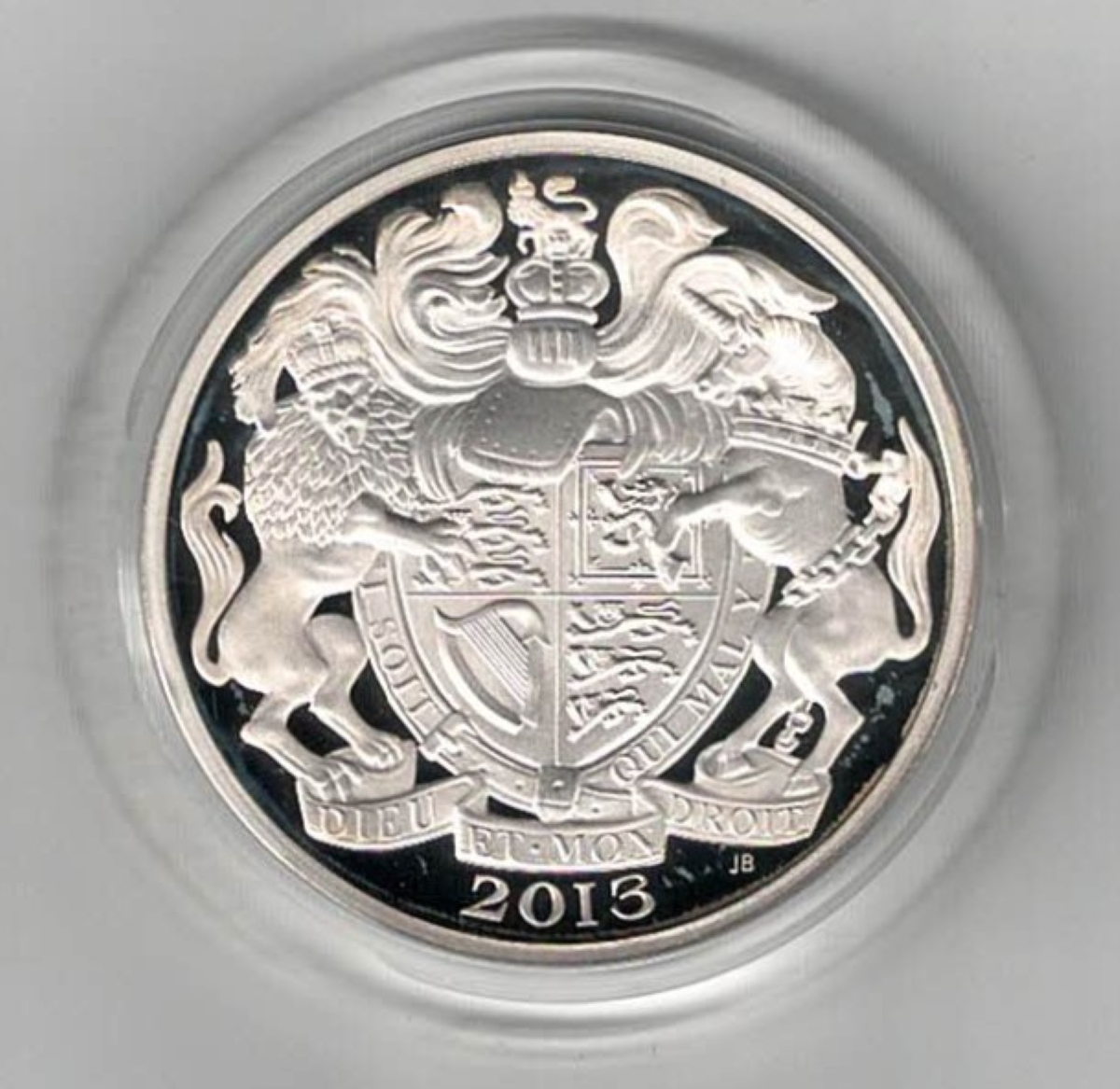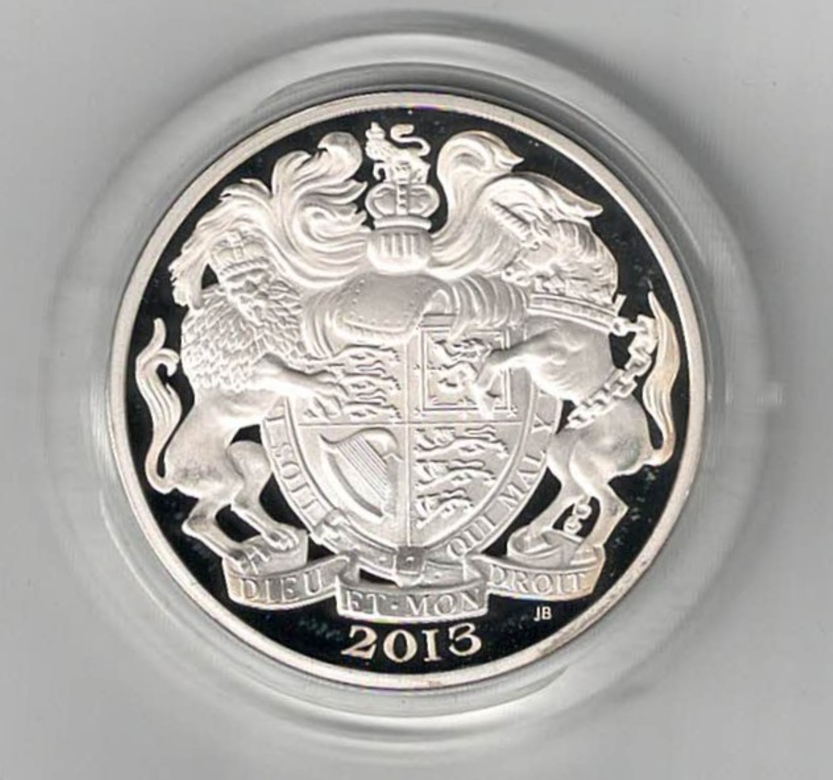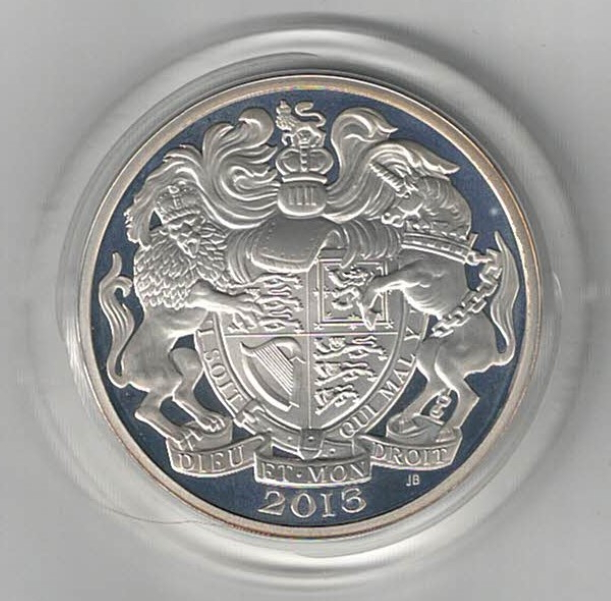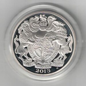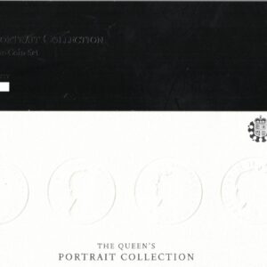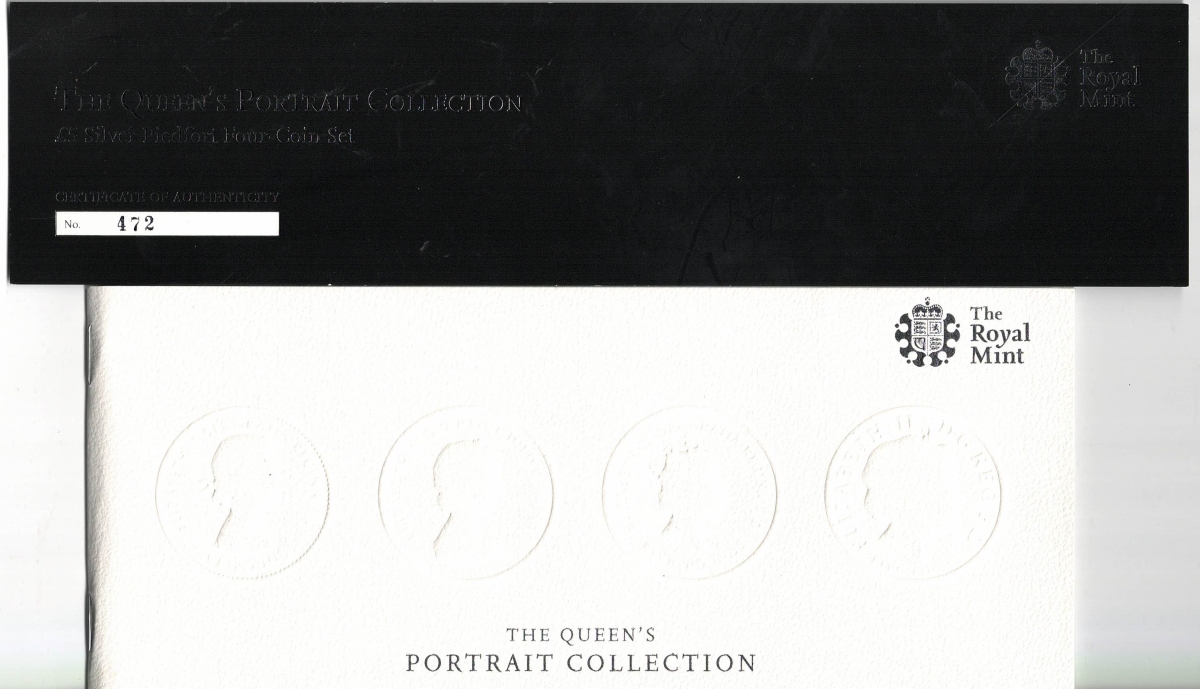 This is ‘The Queen’s Portrait Collection’, The Obverse of each of the four Piedfort Five Pound coins features a different portrait of the Queen from the First to the Fourth. The Reverse of each coin all feature the Royal Arms.