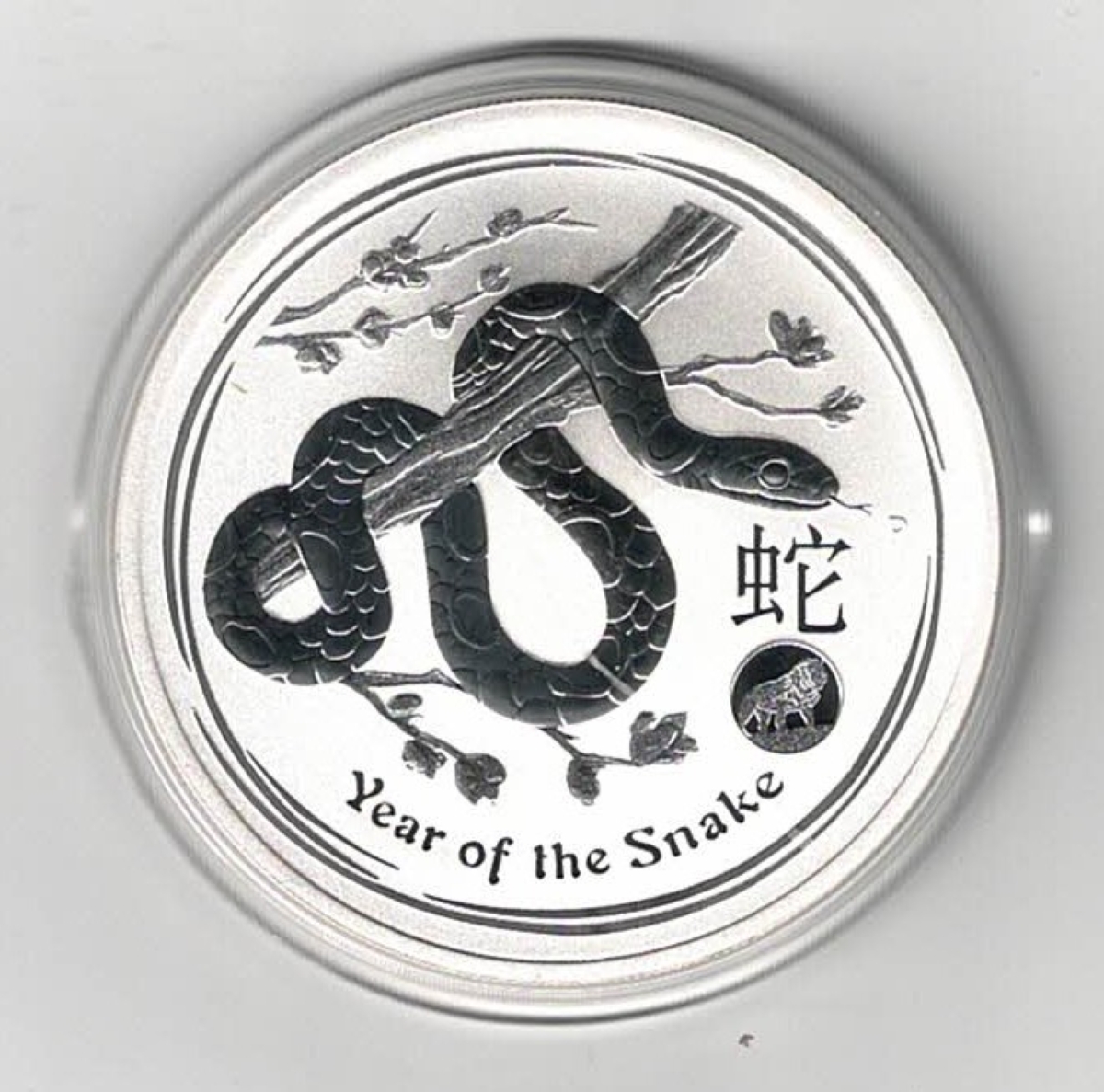 2013 Silver Australia One Ounce ‘Year of the Snake’ Coin in mint condition.