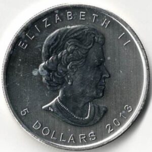 This coin has an intrinsic value of Five Canadian Dollars.