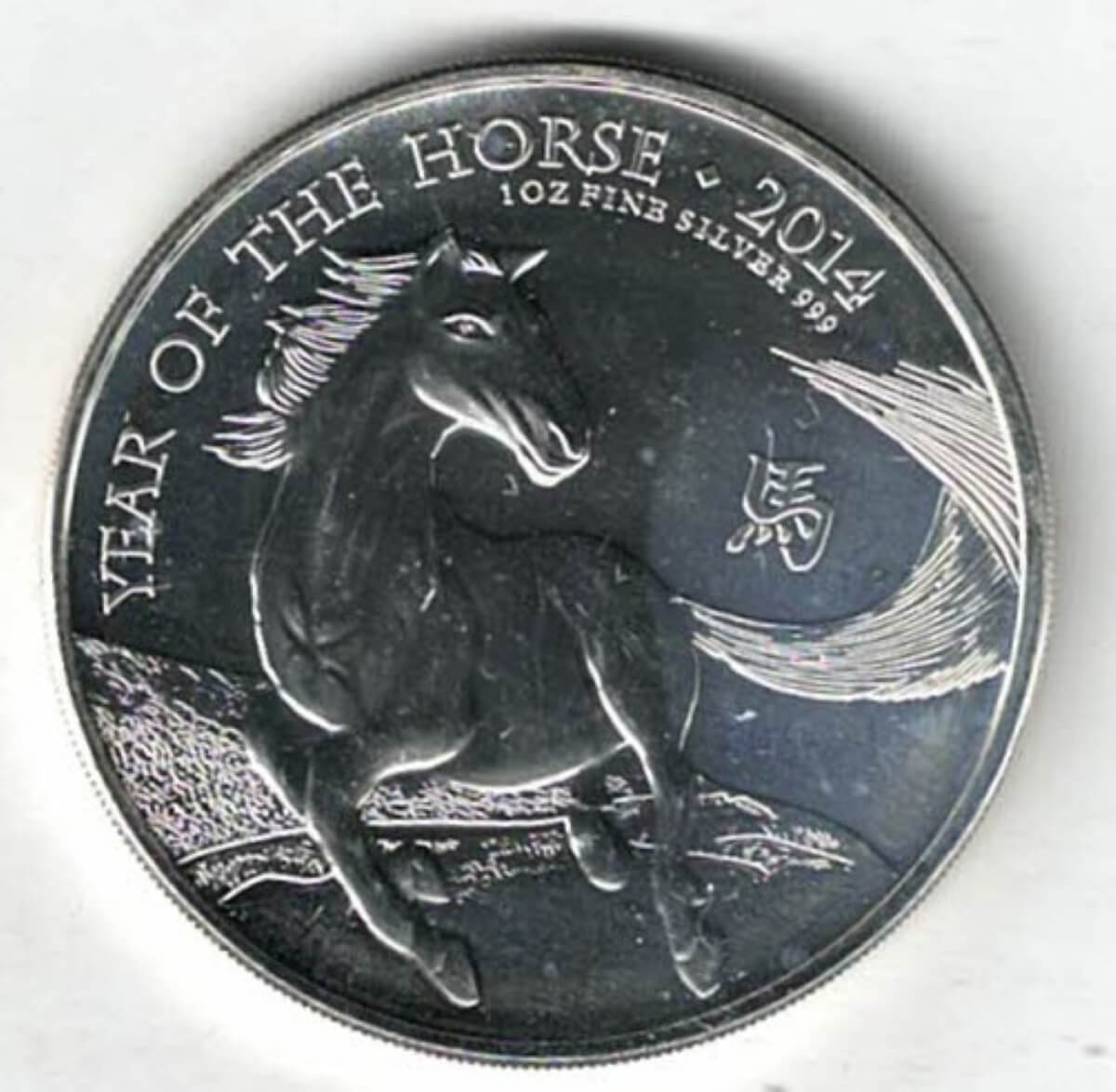 This 2014 coin struck in fine silver by the Royal Mint. The obverse features the portrait of Queen Elizabeth II facing to the Right. The reverse features the Lunar Year Of The Horse.