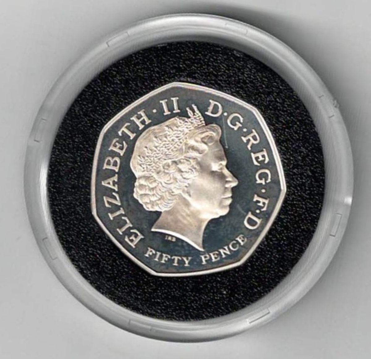 This fifty pence coin comes complete with a hard black box, outer card box, capsule & certificate/booklet as issued by the royal mint.