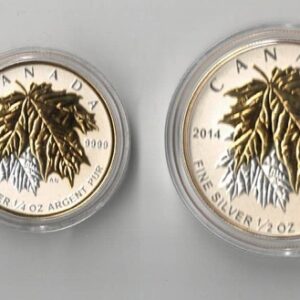 2014 Silver Reverse Proof Canadian Maple Set - five Coins. This set features Elizabeth II on the obverse. Boxed with certificate.2014 Silver Reverse Proof Canadian Maple Set – five Coins