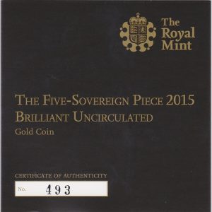 2015 Queen Elizabeth II Gold Five Pounds Brilliant Uncirculated Coin.
